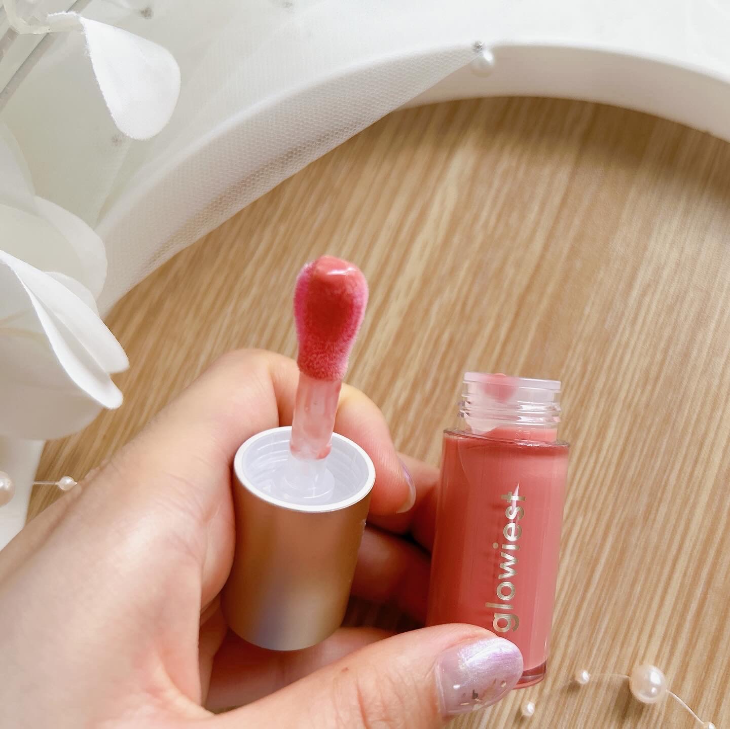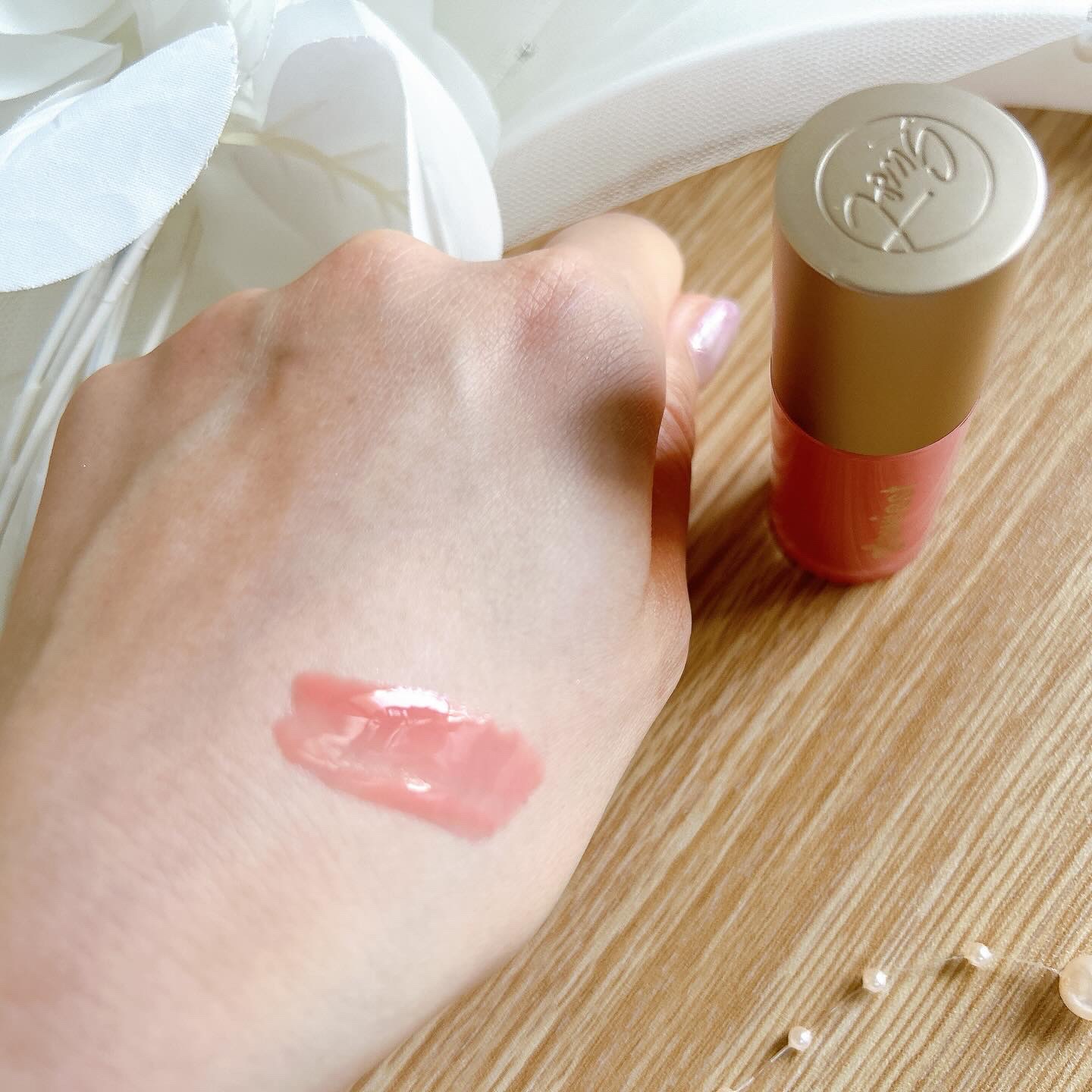 ゴールドの煌めきが繊細で上品可愛くて購入しました! つけると派手なのかな?と思っていたゴールドもつけてみると繊細なラメで上品にツヤが出ます◎ 光に当たるととっても可愛い😍🩷 まだ在庫が残っているみたいなので気になる方は是非チェックしてみてください🫶✨