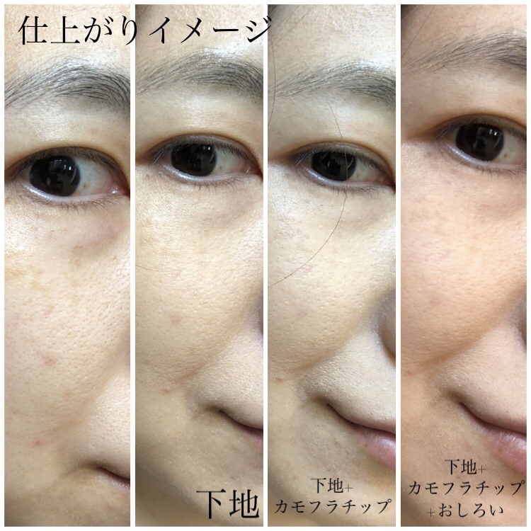 沈み込むタイプのやわらかいスポンジです。チョンととるだけでいいカバー力なので、ふたの裏でつける量を調節。 頬の高い部分から伸ばし、外側へ伸ばしていきます。さらにカバーしたい悩みのあるところに、重ねつけ。 ①オークル やや明るめ〜中間的な明るさ ナチュラルで落ち着いたカラー。暗めの色合いなのでパウダーで調節しています。