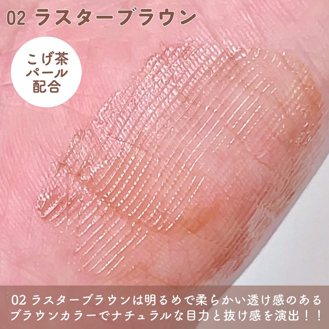 - <01 ラスターブラック> 水添ポリイソブテン、パルミチン酸デキストリン、ジステアルジモニウムヘクトライト、イソドデカン、トリメチルシロキシケイ酸、PEG-10ジメチコン、ポリエチレン、BG、水、テトライソステアリン酸スクロース、トリイソステアリン酸PEG-20水添ヒマシ油、アルギニン、ヒアルロン酸Na、BHT、トコフェロール、シリカ、トリエトキシカプリリルシラン、デヒドロ酢酸Na、酸化鉄、酸化チタン、マイカ <02 ラスターブラウン> 水添ポリイソブテン、パルミチン酸デキストリン、ジステアルジモニウムヘクトライト、イソドデカン、トリメチルシロキシケイ酸、PEG-10ジメチコン、ポリエチレン、BG、水、テトライソステアリン酸スクロース、トリイソステアリン酸PEG-20水添ヒマシ油、アルギニン、ヒアルロン酸Na、BHT、トコフェロール、トリエトキシカプリリルシラン、デヒドロ酢酸Na、酸化鉄、マイカ、酸化チタン