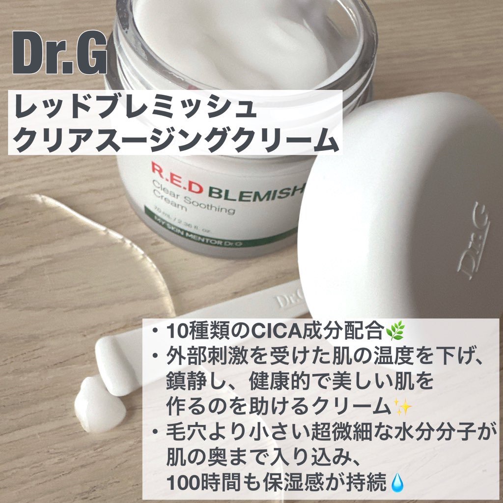 Dr.G(ドクタージー)レッドブレミッシュクリアスージングクリーム50g。@dr.g_official_jp敏感な肌にたっぷりの水分を与えるジェルクリーム。夏に使うとすんなりお肌に馴染んで、さっぱり。10種類のCICA成分を配合し、紫外線や熱...