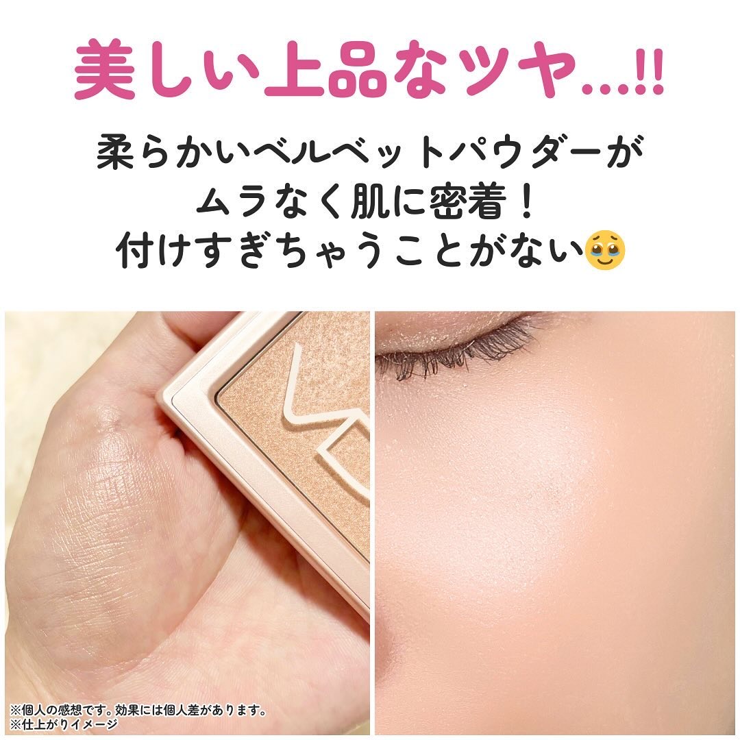 - 柔らかいベルベットパウダーがムラなく密着し、 くすみにくく明るい印象が続くブラーリングチークです。