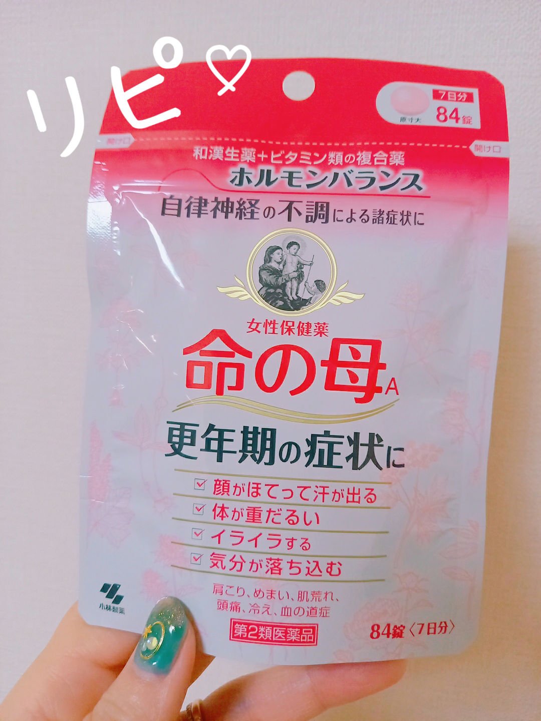 数年前から何度病院に行っても更年期とは診断されず、色々調べても特にコレ!といった病名もなく、しかし更年期の様な不調が続き生理痛も酷いので命の母を定期的に飲んでます。 コーティングされているので変な香りもせずに飲みやすいです。 粒も大きく無いので4つ一気に飲み込めました。
