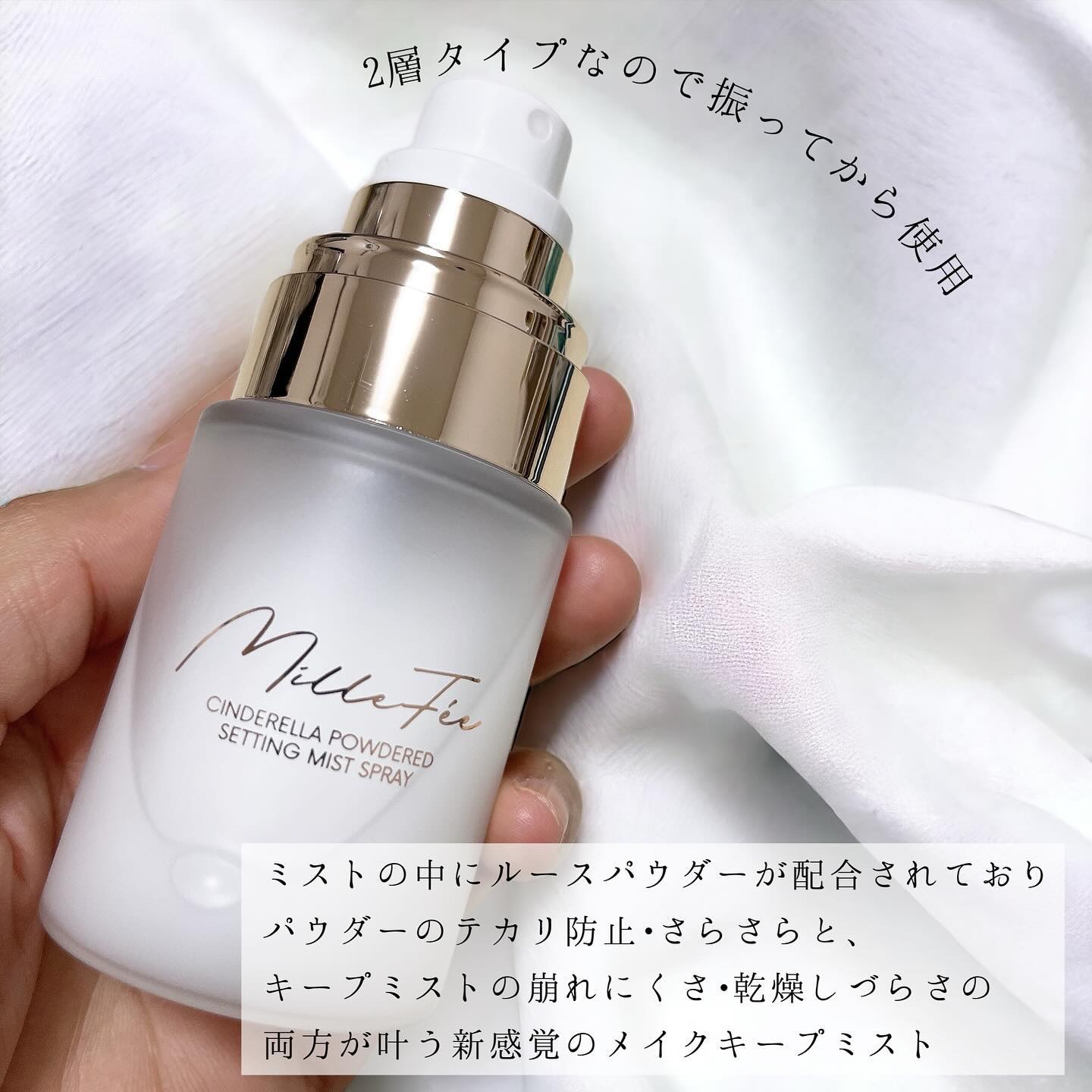 .最近ヘビロテ中のキープミスト♡‧₊˚【MillFée】“シンデレラパウダリーミストキープ+”¥1,650(税込)パウダーが配合されたミストで仕上がりサラッとメイクキープ(∩˘꒳˘∩)♡゛動画の通り超微粒子なミストだからあれ?かかってる?っ...