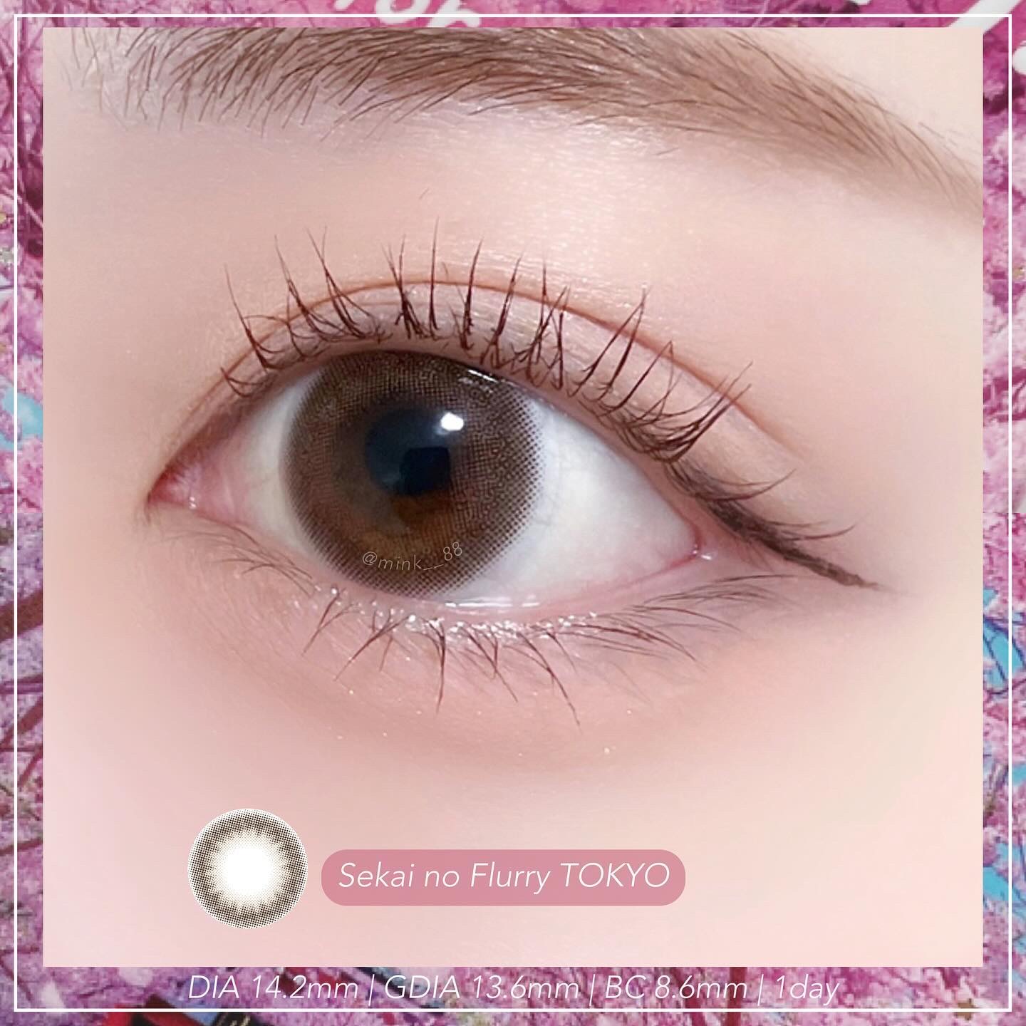 ほんのりピンクにブラウンのフチ デザインもナチュラルでふんわり盛れる🤍 くすみピンクと大きめのグラフィックで ガーリーな雰囲気に🎀 くすんだアッシュ系で垢抜けた瞳に♡ 透明感のある儚げなピンク♡ ピンク初心者さんにもおすすめ!