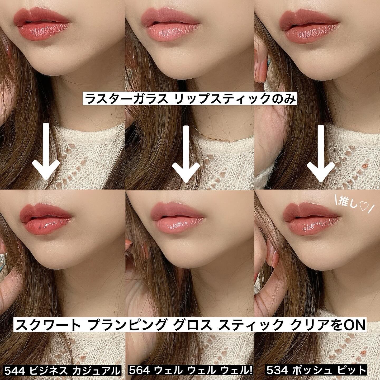 その名の通りノールックで塗れるリップ。 迷わず全色購入。 直径12mmと大きめで、ぴゃ!と塗れる。 シアーだからはみ出ても目立たず汚くならないの! 4種の美容オイルも配合してるから リップクリーム感覚で使えるよー!! 正にこれ全色グリグリップ🤣