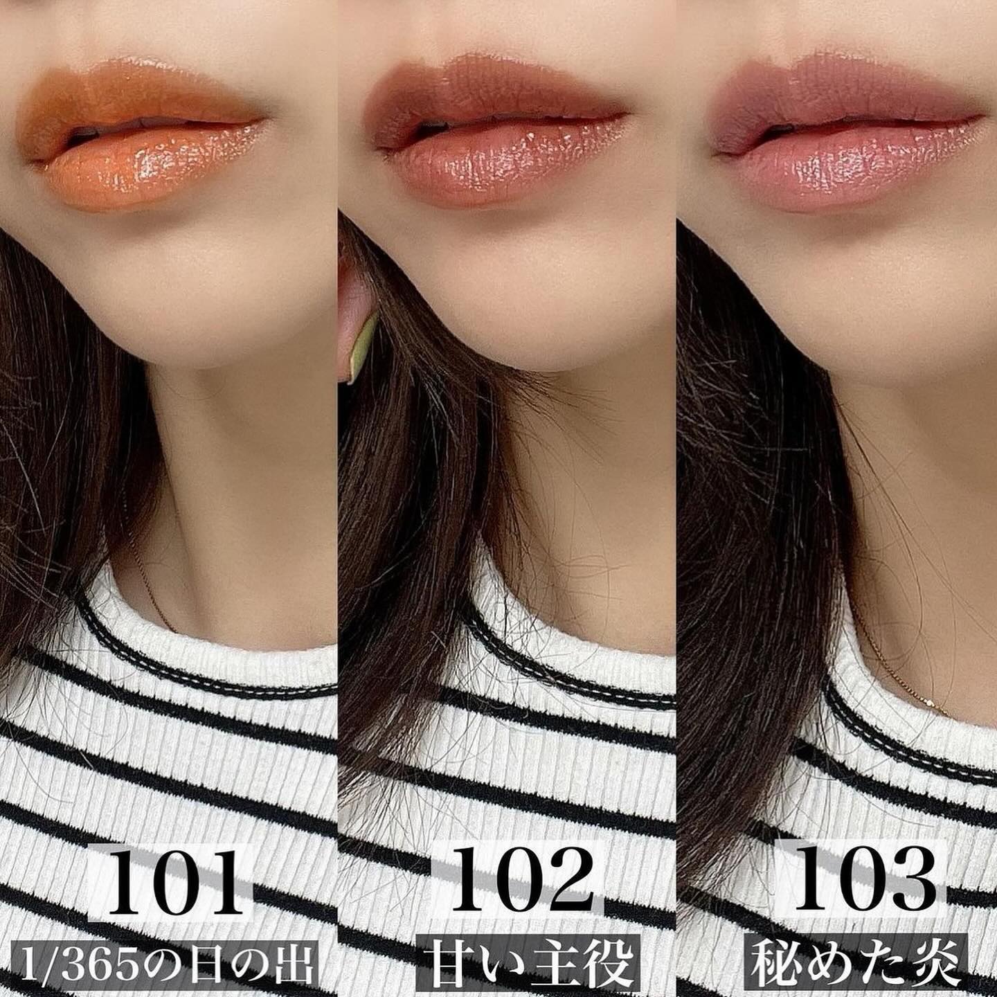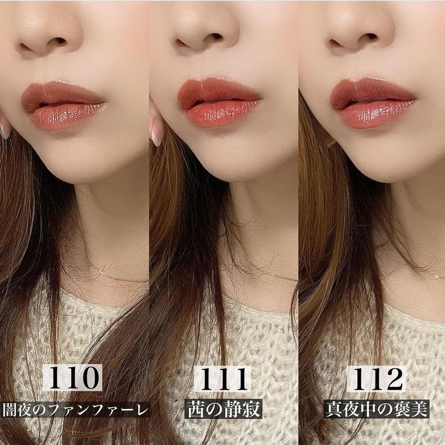 艶感と安定の色もち.年々唇の色が消えていくからあるとすごく安心なのよ🥺✨ 定番の中で私がよく使うカラーは陽炎、パンプキンワイン、5:00AM、憧れの日光浴! そして新色の綿雲33000ft、100億haの砂海です!