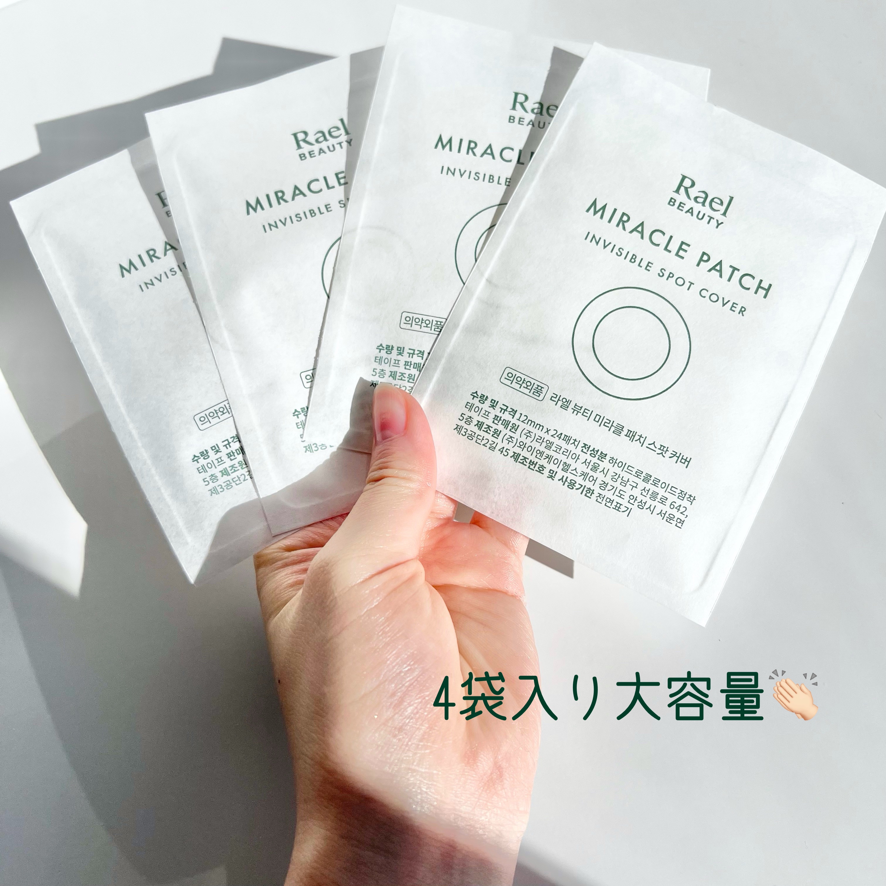 肌荒れ 保護 清潔感のある淡いグリーンのパウチ💚 手のひらより大きくチャック付き 衛生的かつ持ち運びや収納に便利✈️ 保護シートをぺろんとめくる 枚数が多いから長く使えそう 中央がぷくっと盛り上がった形状 すべすべしたシリコン系の肌触り 柔らかくて伸縮性がある素材🎵 肌にピタッと密着し触れても剥がれない 透け感がある分目立ちにくい🌱 12mmのほうがより安定感がある印象🧐 接触を避けたい時に役立つ便利アイテムです🙋♀️