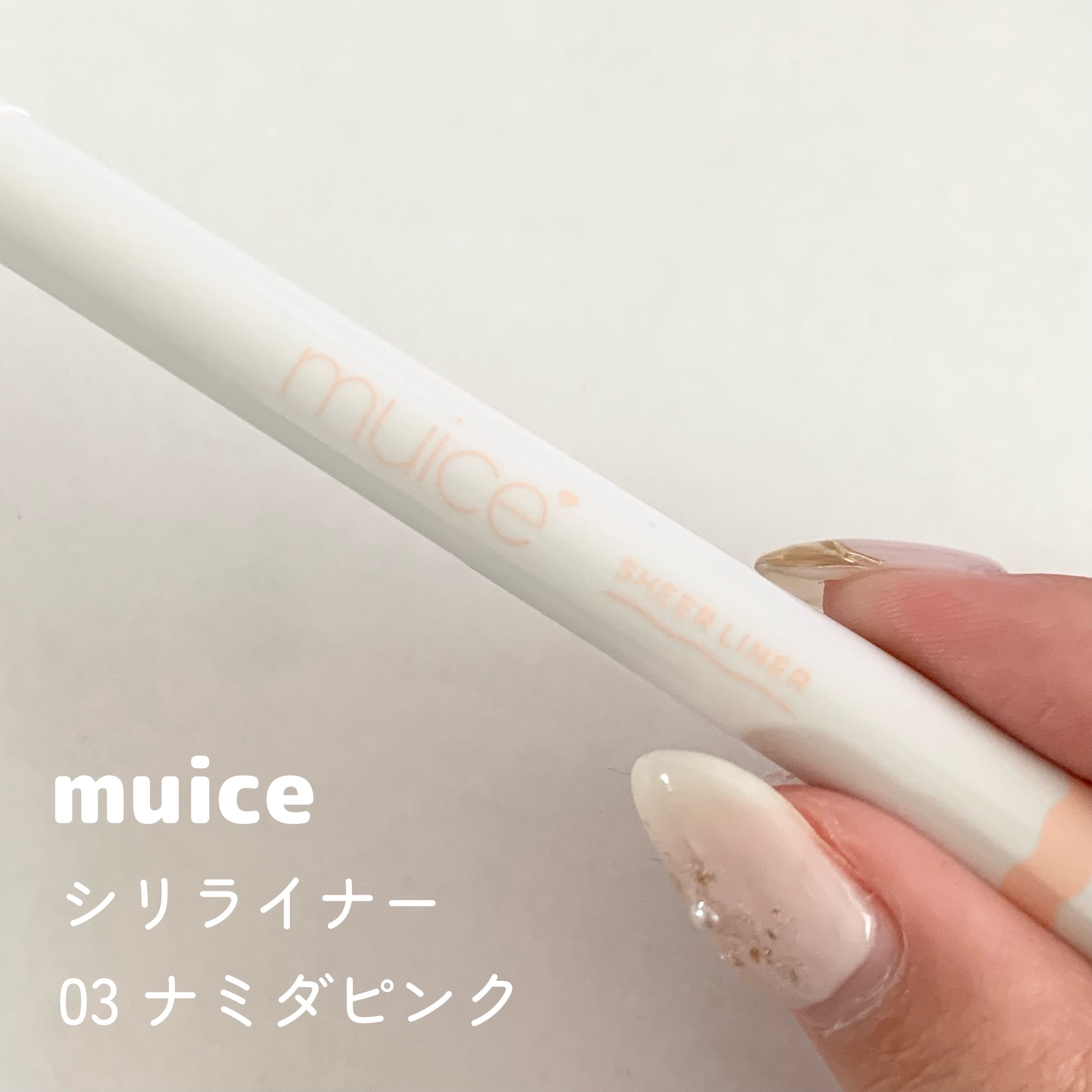 ◯muiceシリライナー 03 ナミダピンク『目尻などマルチに使えるニュアンスライナー!03は、アイライナーやアイブロウの足しカラーとしても使えるし、下瞼のまつ毛のキワに入れても可愛く仕上げてくれるカラー。発色が他の2色よりも薄めにしているの...