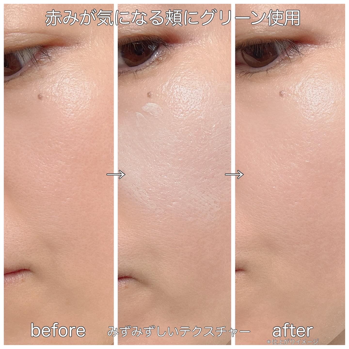 肌荒れケア(ミドリ) 肌荒れによる赤みをカバーして透ける白肌 どの色も肌のトーンアップと保湿力があって乾燥しにくくなるし透明感のある肌になります! それぞれ自分の悩みに合った化粧下地を使うことができるのでうれしいです!