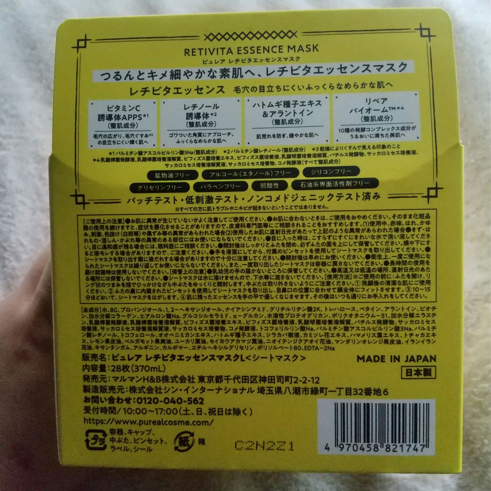 商品詳細情報ピュレア レチビタエッセンスマスク