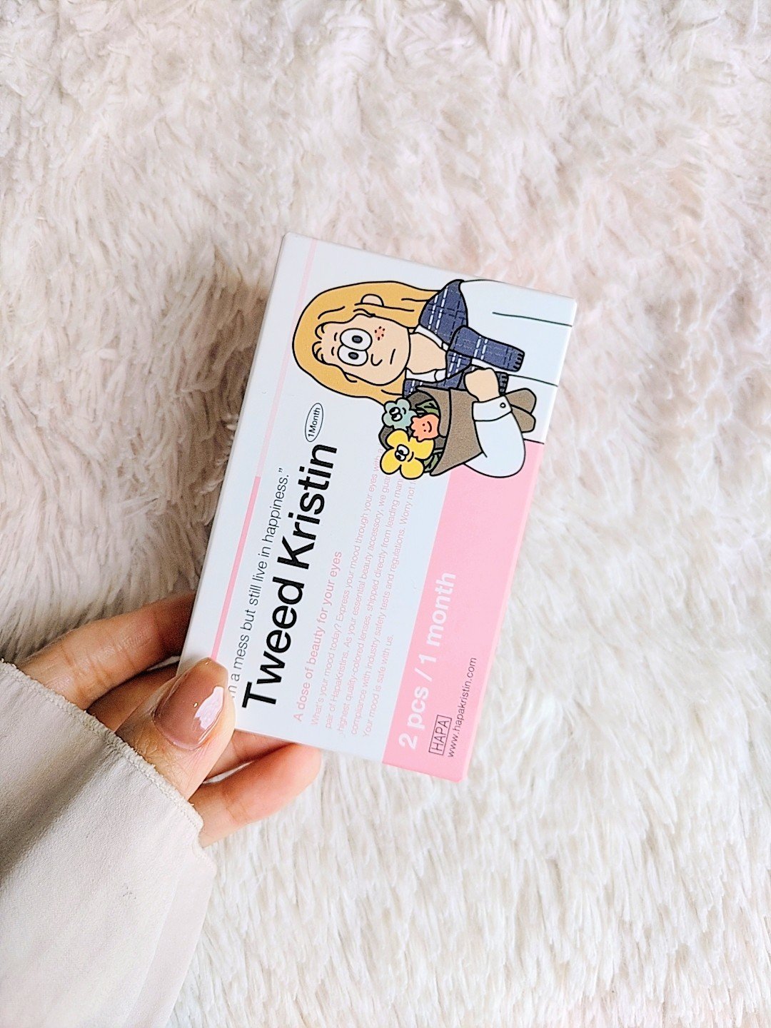 ハパクリスティンの新色モーブグレー ウォニョンちゃんの着画が可愛すぎて購入 あずき色のようなカラーでふんわりグレーなので使いやすく品が良くあざとい🩷 室内で見ると結構ナチュラルな瞳です🥺