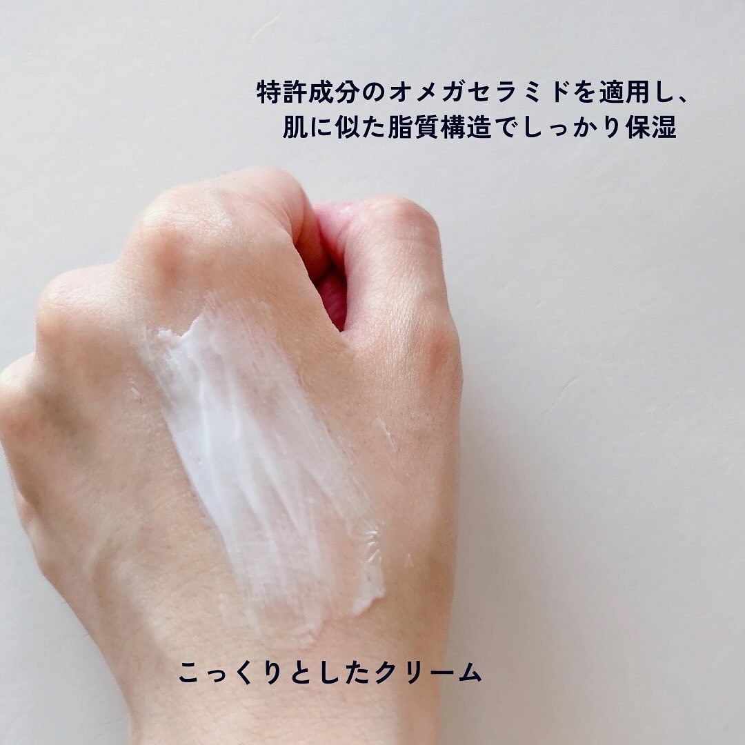 独自開発した肌バリア技術MLE®︎に独自成分オメガセラミドを適用したクリーム💙 こってりとしたテクスチャーのクリームなんだけど、肌に馴染ませていくとさらっと溶けて軽い質感になるよ🫶 保湿感があるけど、ベタつかないから年中使えるクリーム💙✨