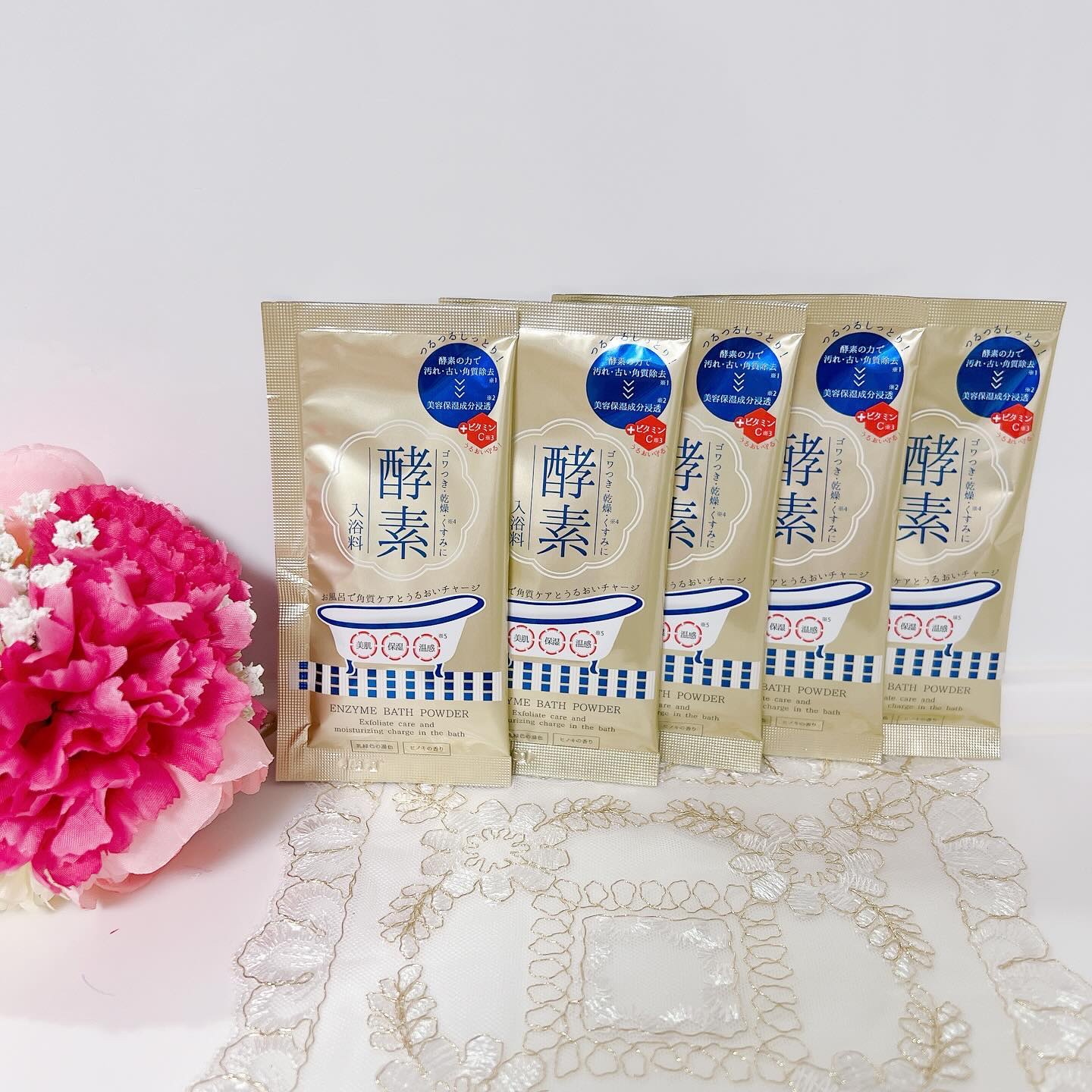 - 入浴で角質ケアとうるおいチャージができる酵素配合の入浴料。 3種類の酵素(*1)のパワーでゴシゴシ洗いしなくても汚れや古くなった角質を優しくケアし、摩擦の少ない使い心地&手の届かないところもつるんと清潔な素肌に。 さらにお肌の潤いを守るビタミンC(*2)、厳選したこだわりの美容保湿成分を配合。 まるっと全身メンテナンスで明るい(*3)つるすべ肌に。 *1洗浄成分 *2整肌成分 *3汚れや古い角質の除去による肌印象