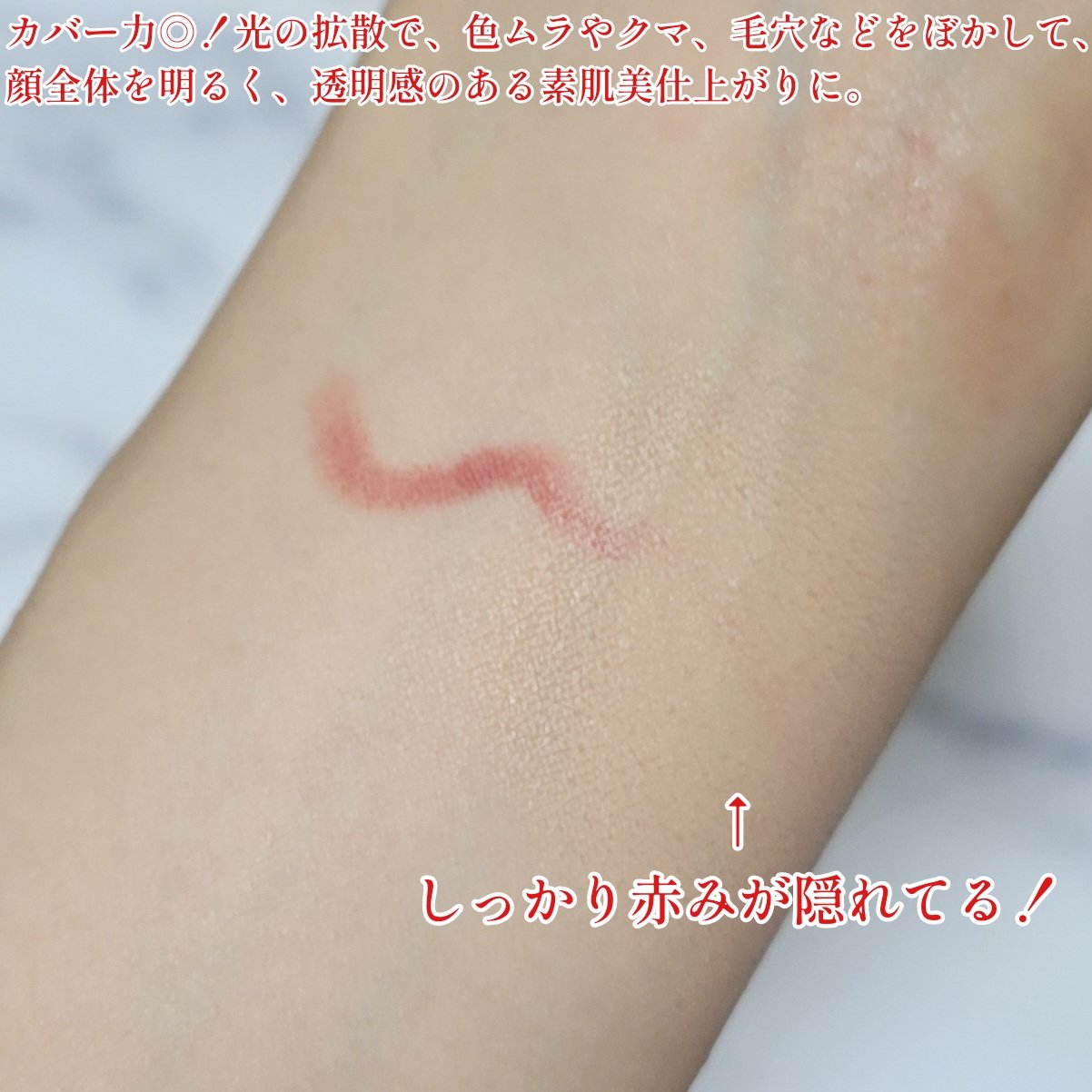 - SPF10PA++ ひと塗りでも重ねても、肌になじんで薄膜密着。 光の拡散で、 ポイント悩みをぼかして気づかせない。 顔全体を明るく、透明感のある素肌美仕上がりに