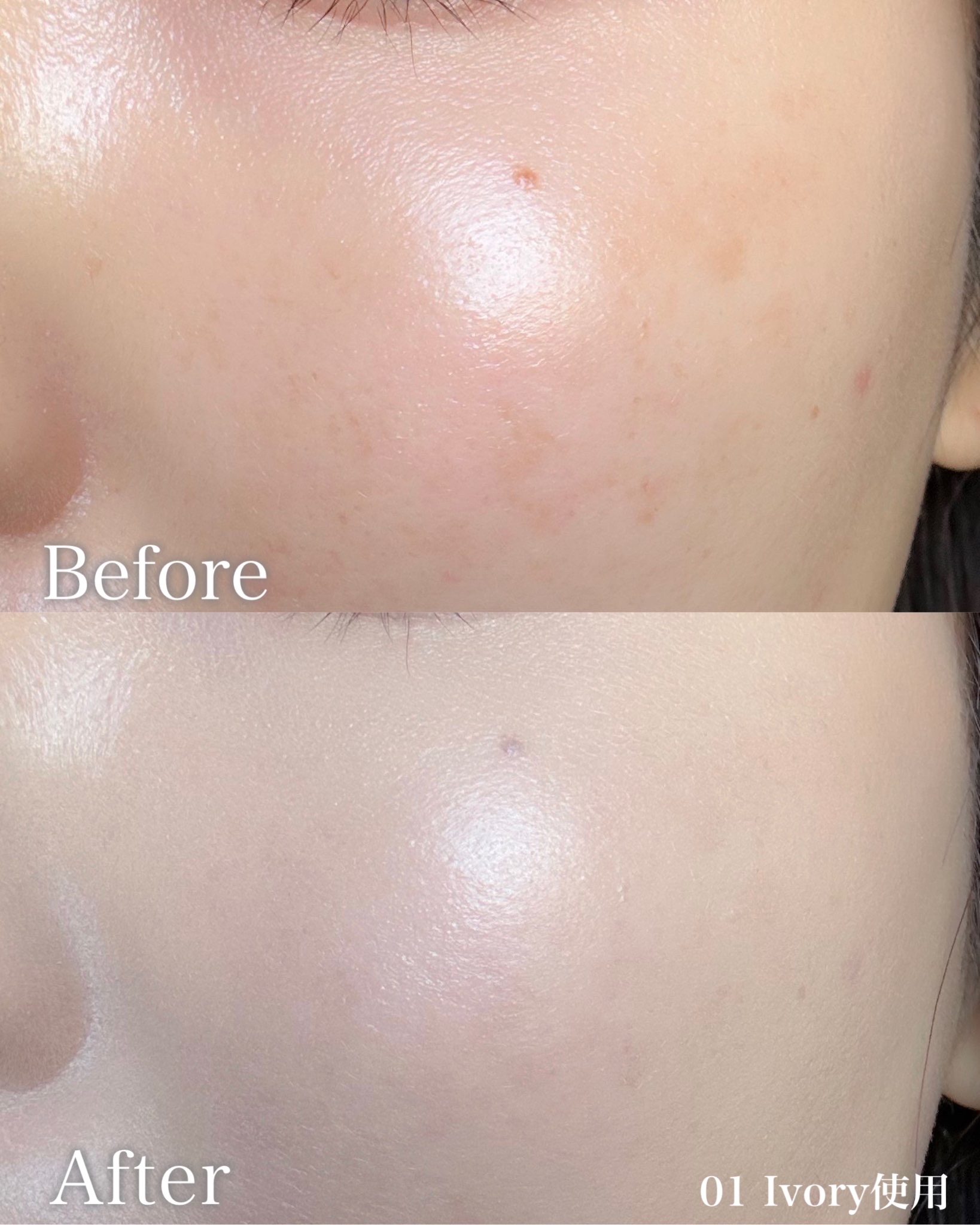 オイルを含んだデュアルメルティングパウダー配合で肌に溶け込むように密着◎ ホワイトトリュフエッセンスとホワイトフラワーコンプレックスをブレンドし透明感*のある肌へ 程よいセミマットな仕上がりで自然なツヤ感*があります。密着力、カバー力も申し分なし!