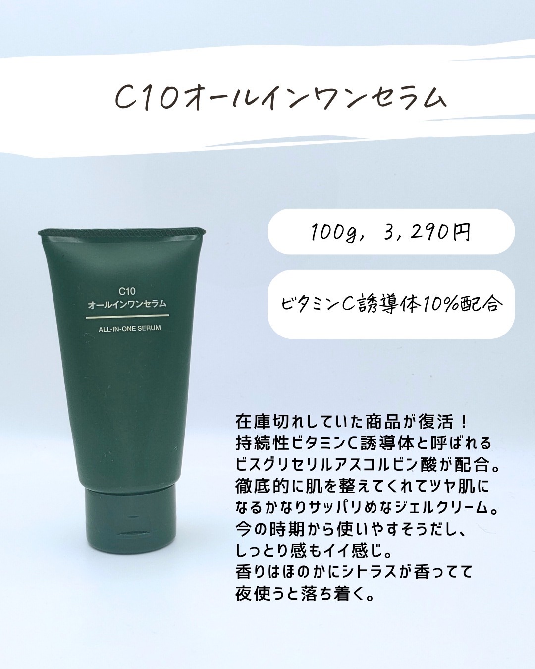 肌が荒れた時にビタミンCがいいとSNSで見かけたというフォロワーさんがいたけど、これは本当に辞めてほしい(濃度にもよるけど) ビタミンCは攻めのケアでもあるから、肌が敏感な時には避けてほしい。 でも、メラニン予防とか毛穴ケアには本当に良い商品でもあると思うから、使い方を間違えずに選択してほしいな!!