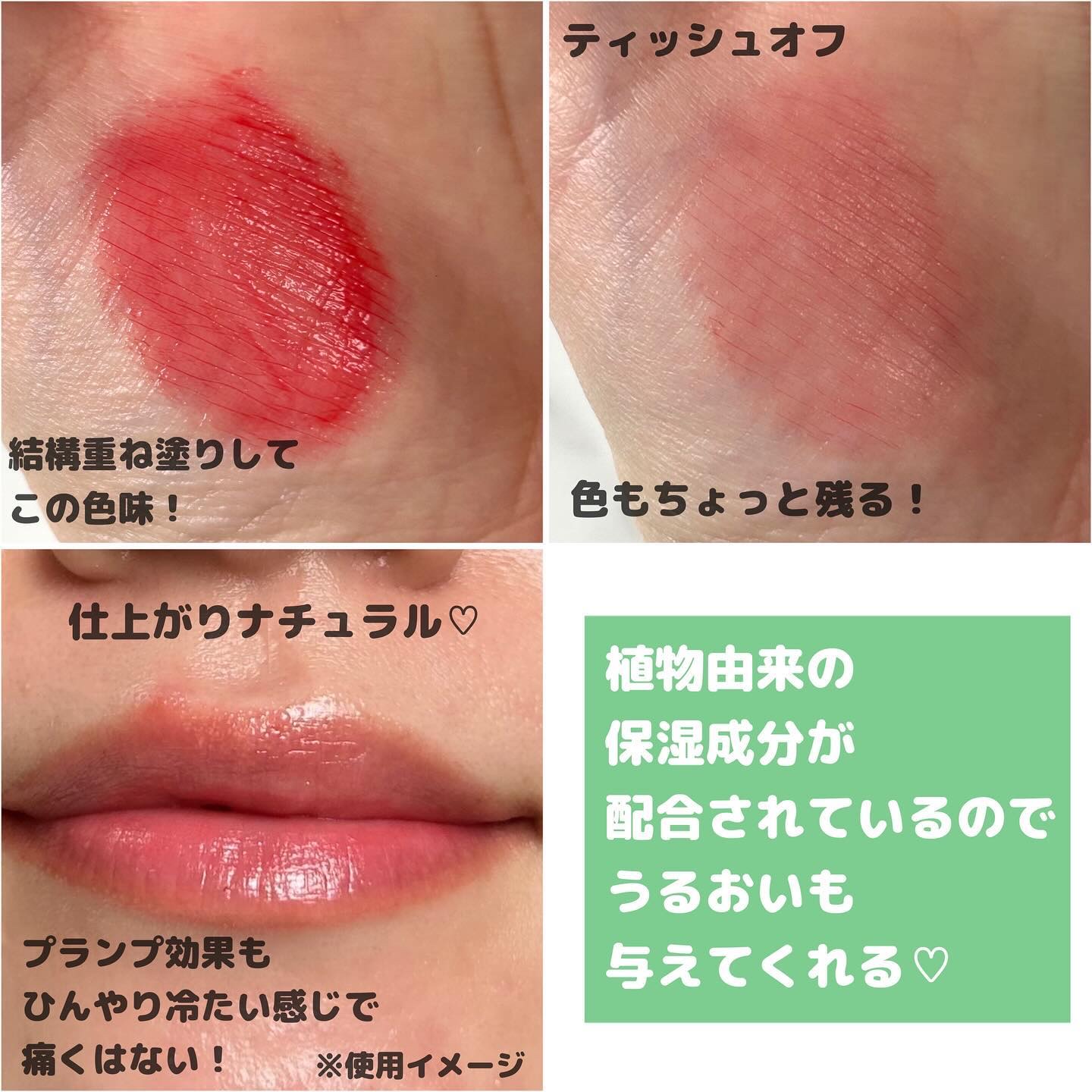 赤みがかった青みピンクのローズ系カラー♡ LIPSパーソナルカラー診断何回やってもブルベ冬な私には馴染みが良くてかわいく発色してくれるので、かなり愛用しているリップの1つです! マットのティントリップですが、塗るとツヤ感が。 5分くらい時間を置くとピタッと密着してマットになります! ただ全く落ちないかと言われるとそれはないです。落ちます。 ただ落ちにくいのは落ちにくい!! カラーが使いやすくてかわいいので大好きなリップです♡