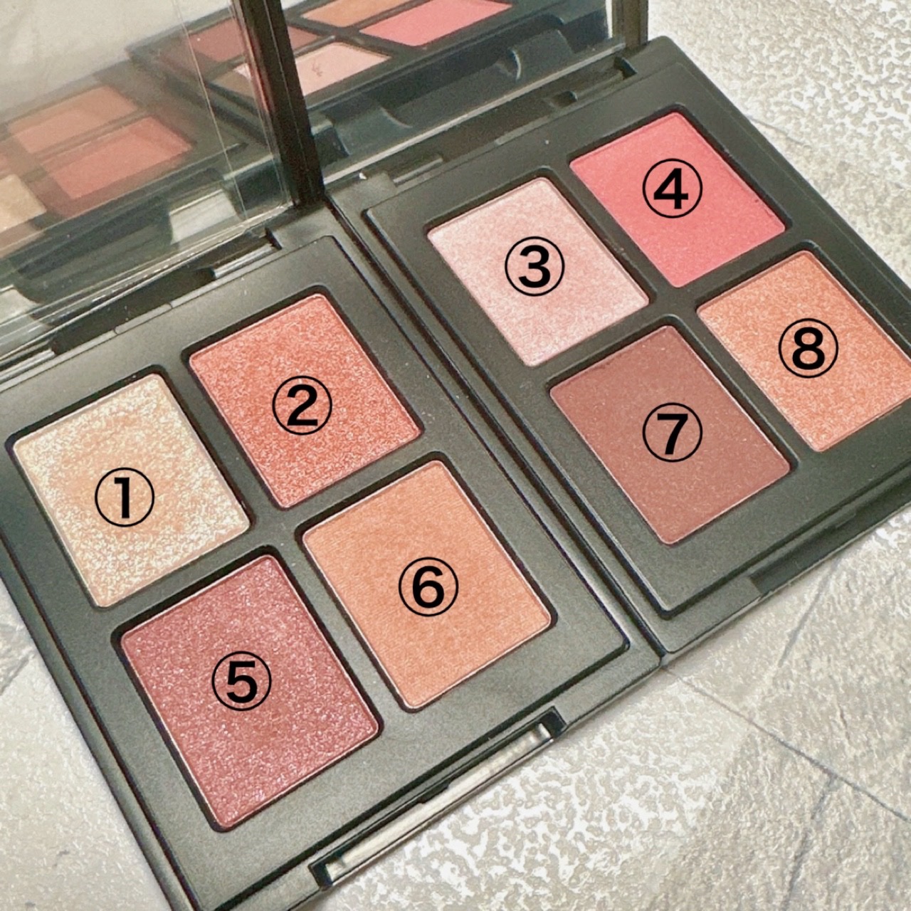 肌に乗せた時の方が明度が高く感じるアイシャドウ。 締色はおしゃれなピンクブラウン。オレンジは最後に瞼の中央にのせてみたけど、ピンクの甘さを少しヘルシーにしてくれてオレンジ苦手な私も大満足😋 こちらの商品はエトワルローズさまからいただきました。