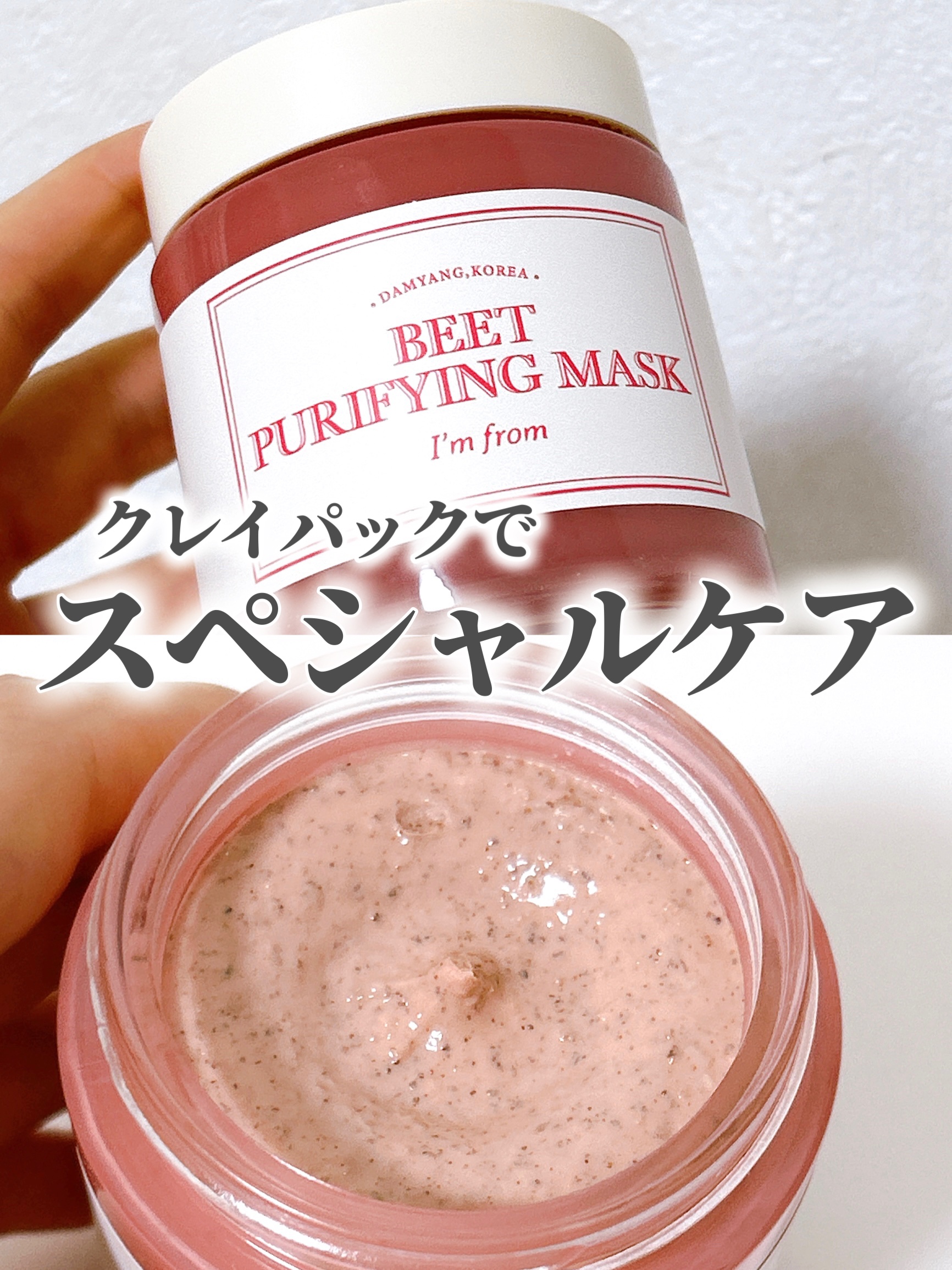 72時間レッドビーツ酵素でクレイを熟成させ、水分維持力を最大化させたレッドビーツ酵素クレイが皮膚に水分を供給して洗顔後もつっぱり感のないしっとり肌へと導いてくれるそうです🙂↕️ なめらかなやわらかいクリーム状のテクスチャーで肌に塗りやすさを感じられました◎ 洗顔後水気を拭いた清潔な顔に塗布した後、10分-15分程置き完全に乾く前にぬるま湯でローリングし洗い流すだけで🆗