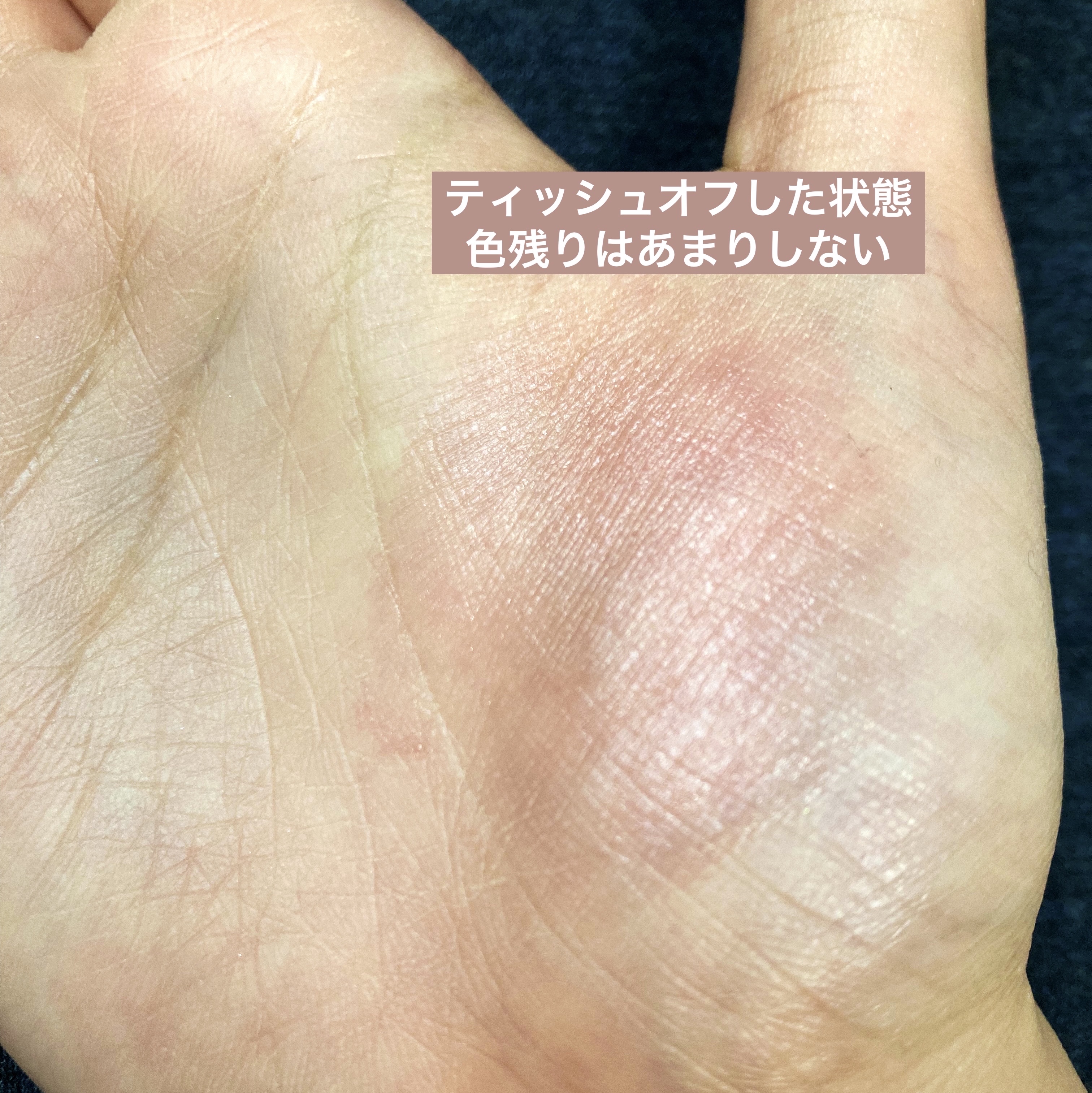 やや硬さが有りながらも、とろりと滑らかに 塗布しやすいリップ とろり塗りはスティックと近い発色となり 素の唇ながら、しっかりと色も感じる仕上がり どちらの塗り方でもシアー感が有り素の唇から 離れ過ぎず浮かない仕上がり