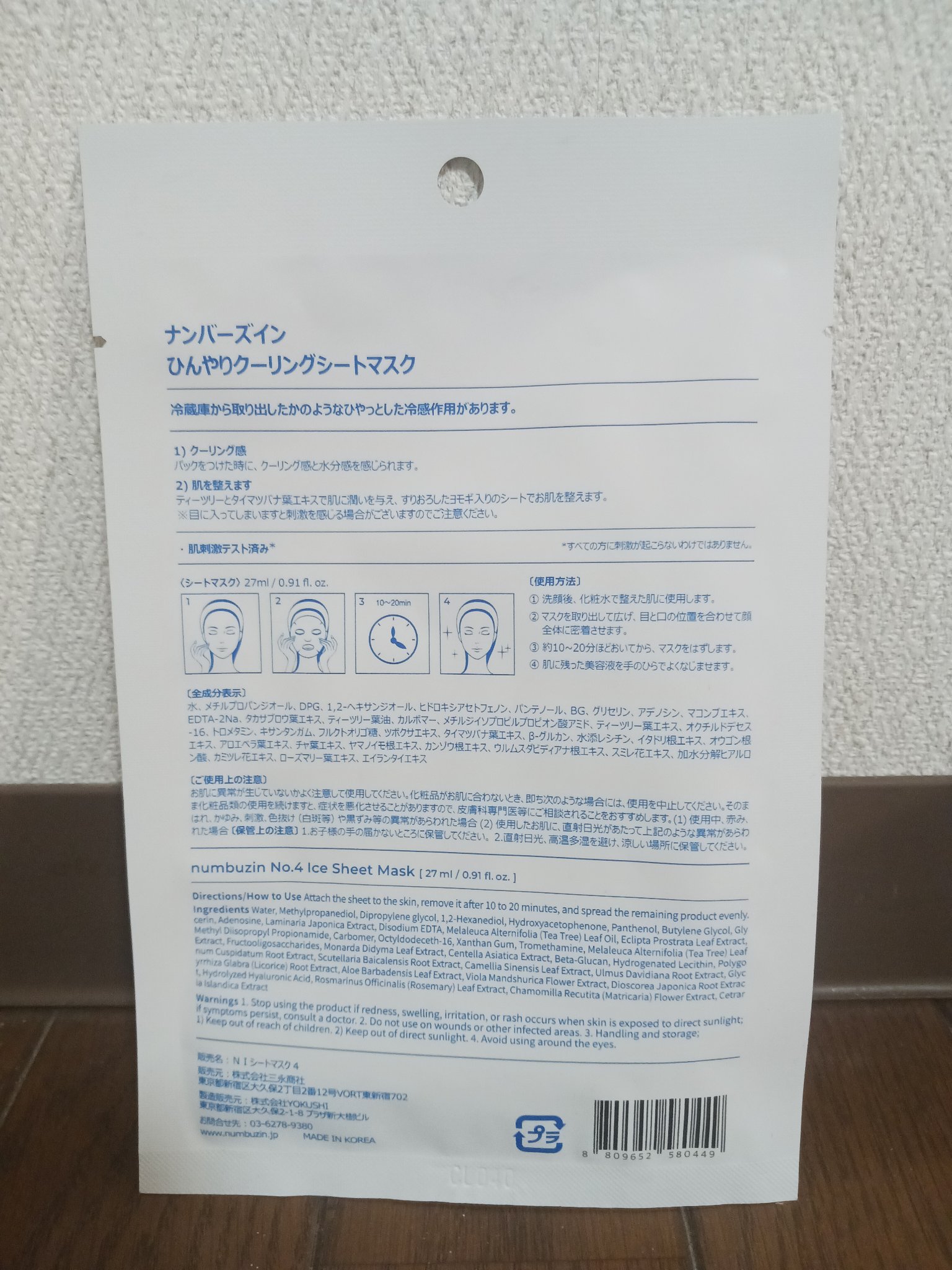 商品詳細情報numbuzin 4番 ひんやりクーリングシートマスク