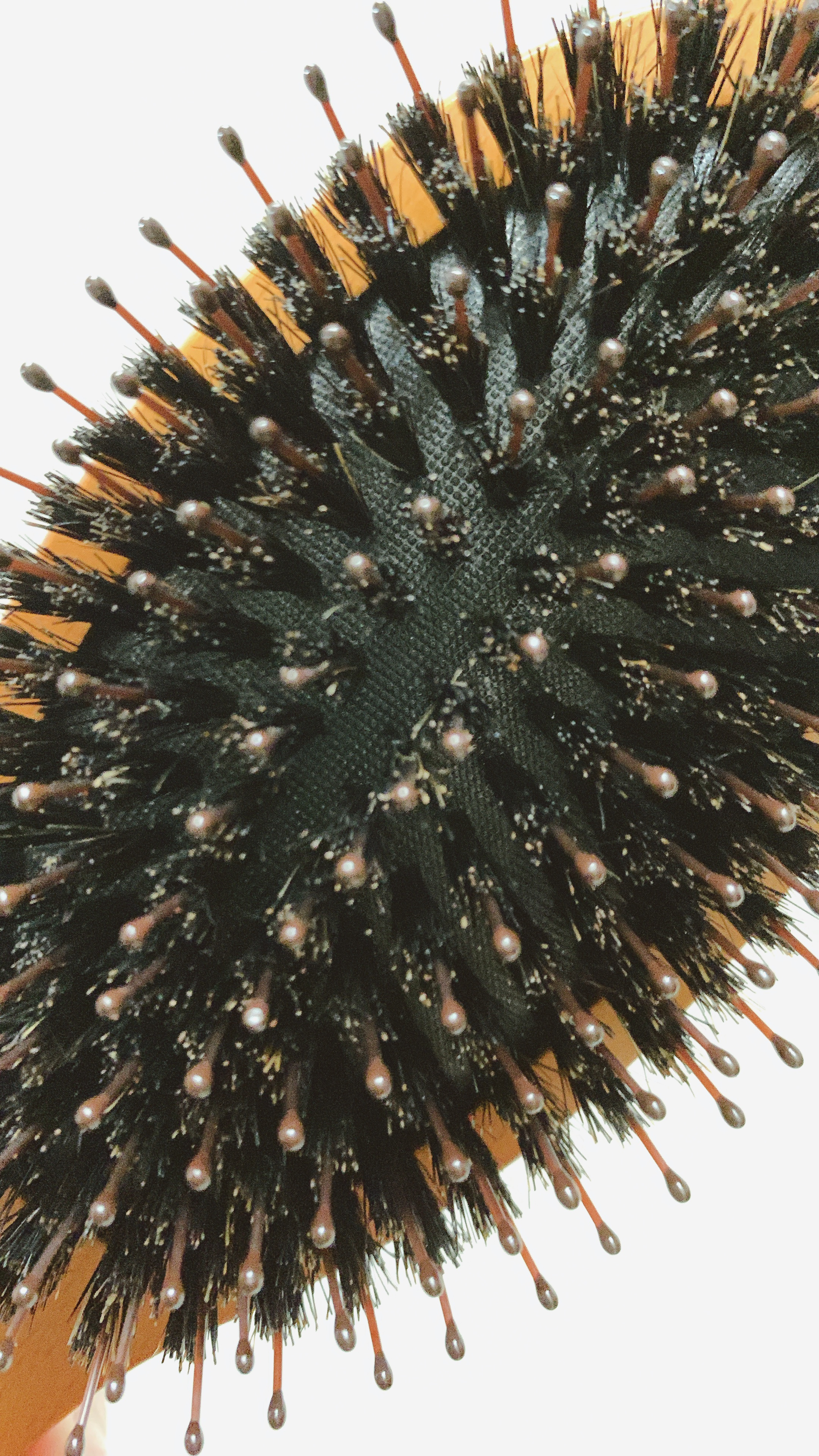 - つやのある、落ち着いた髪へ。 しっかりした猪毛で髪がまとまる。ナイロン毛が頭皮を程良く刺激! ■ つや出し&寝グセおさえに 天然の猪毛で髪に自然なつやとまとまりを与えます。コシのある天然毛なので、寝グセおさえにも最適です。 ■ 程良いテンションでブローできる 猪毛&ナイロン毛のミックス植毛で、髪に程良いテンションがかかりストレートヘアのブローにも最適。落ち着いたまとまりのあるスタイルに。 ■ 頭皮にしっかり届くピンヘッド 肌あたりのよい丸いピンヘッドが、頭皮にしっかり届いてブラッシング!痛くなく、気持ち良い使い心地。