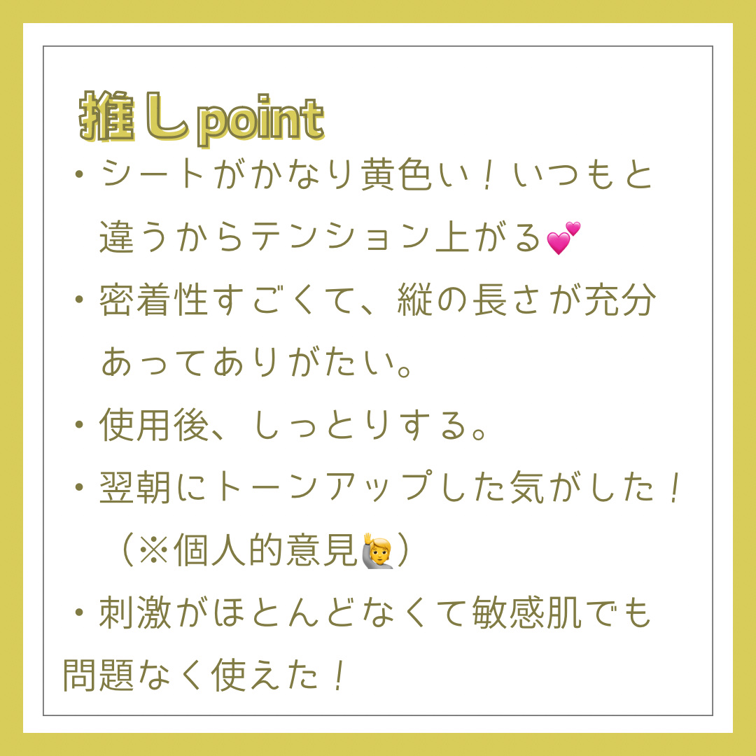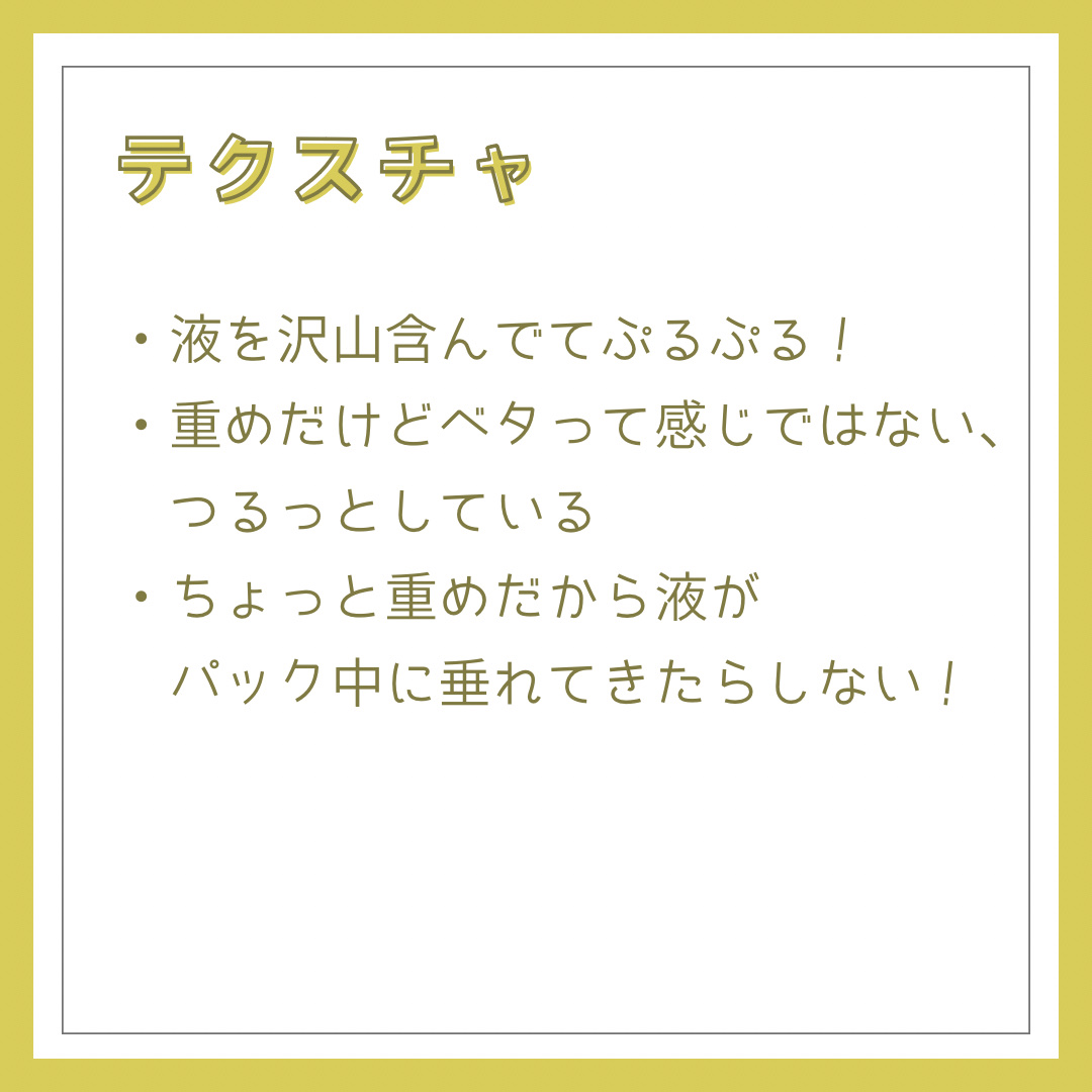 | シート自体の厚みはやや薄めでフィット力高し。 そして何よりとろとろの美容液がヒタヒタに…🥺 | 詳細を見る |