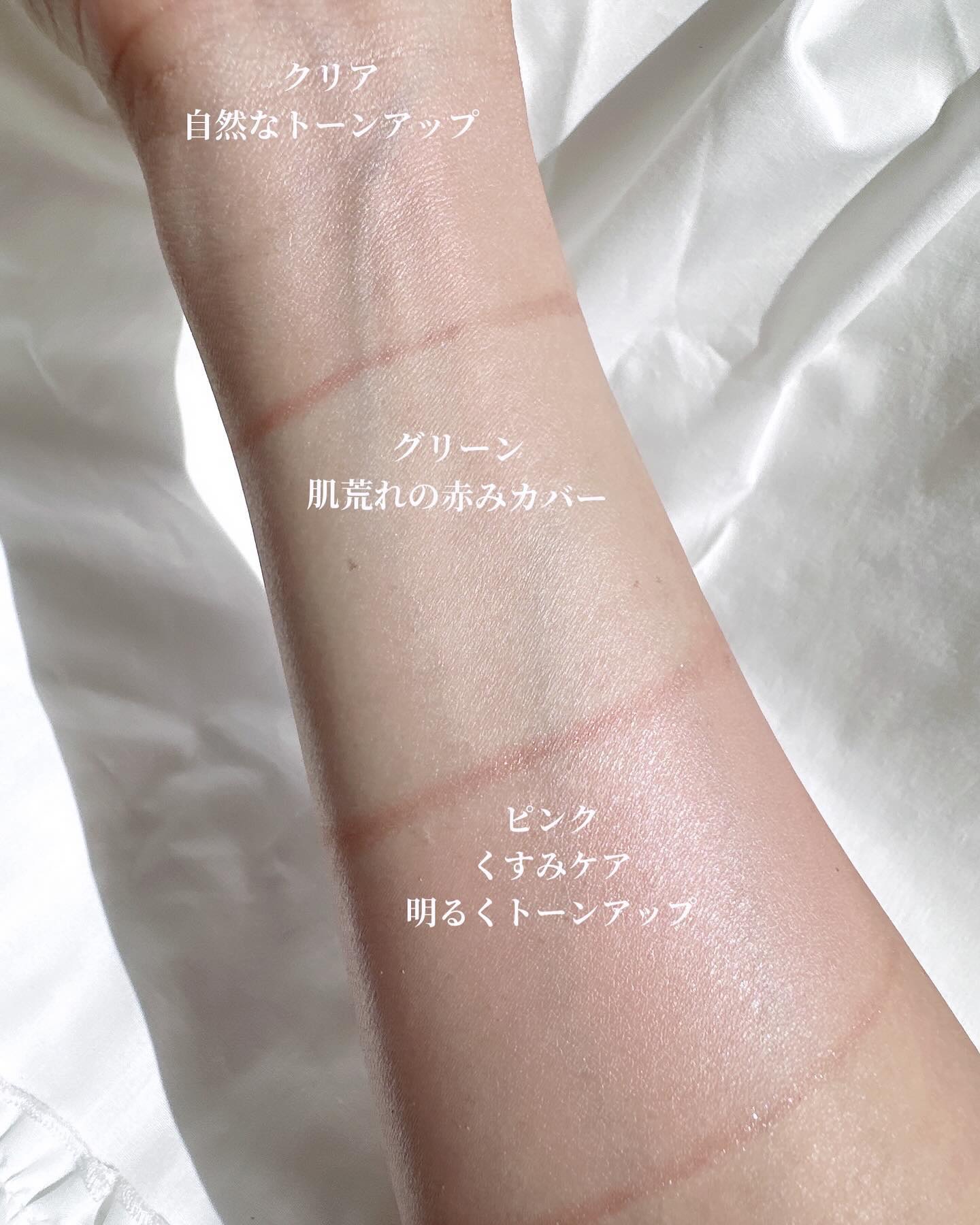 肌荒れケア(ミドリ) 肌荒れによる赤みをカバーして透ける白肌 どの色も肌のトーンアップと保湿力があって乾燥しにくくなるし透明感のある肌になります! それぞれ自分の悩みに合った化粧下地を使うことができるのでうれしいです!