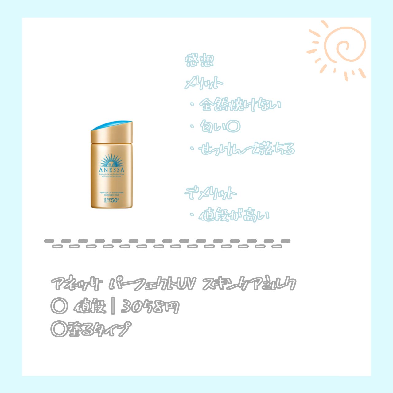 | 日焼け止めミルクランキング第38位 | テクスチャは水のような感じで伸びもよく、コスパも良い♡顔にも使えるしサラサラだし SPF50+ PA++++ | 詳細を見る |