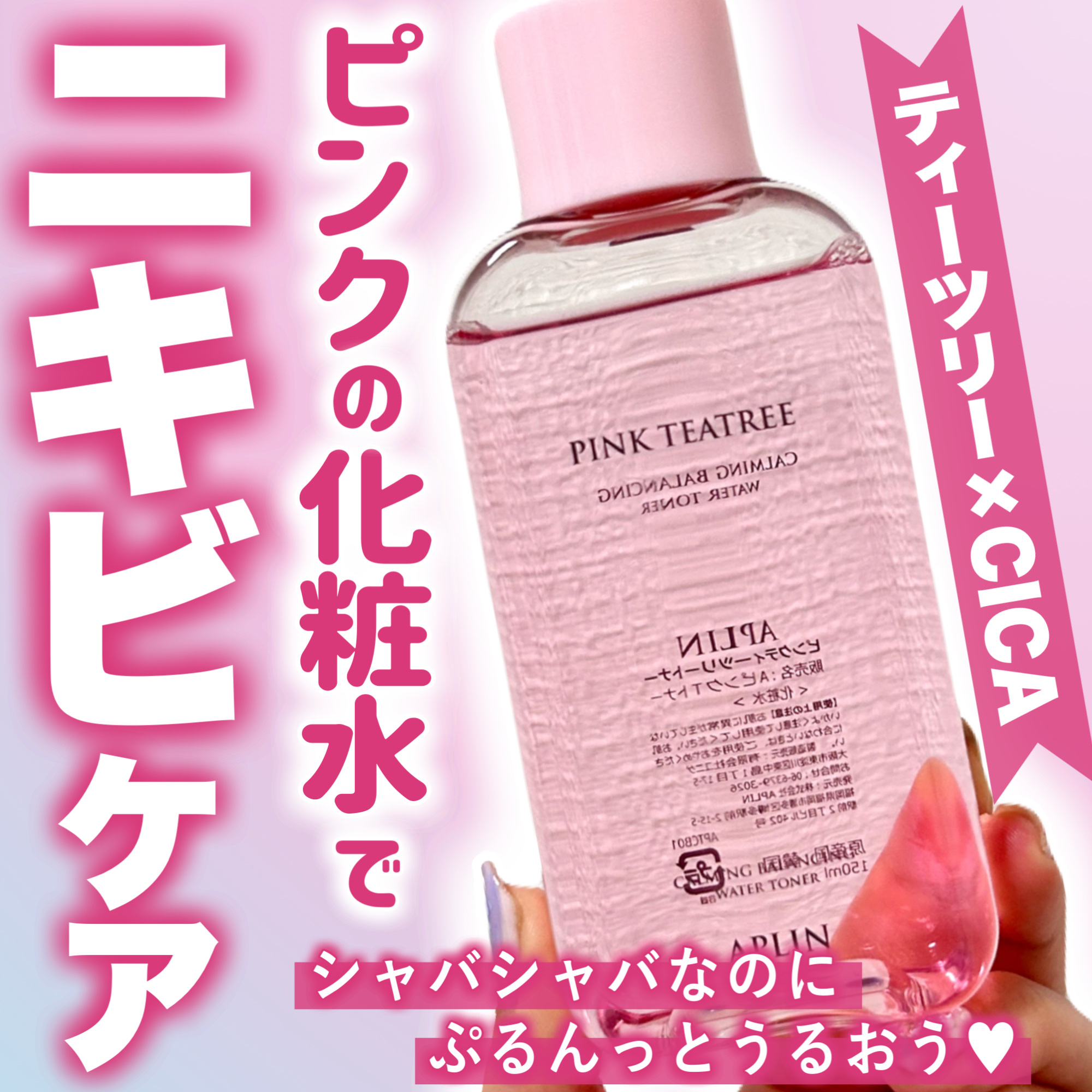 ティーツリーや、シカエキスを配合でニキビ、肌荒れ悩みをケアしてくれるトナー🩷 ピンク色は自然成分「ビタミンB12」本来の色だそう✨ サラサラテクスチャーで、さっぱりした使い心地✨