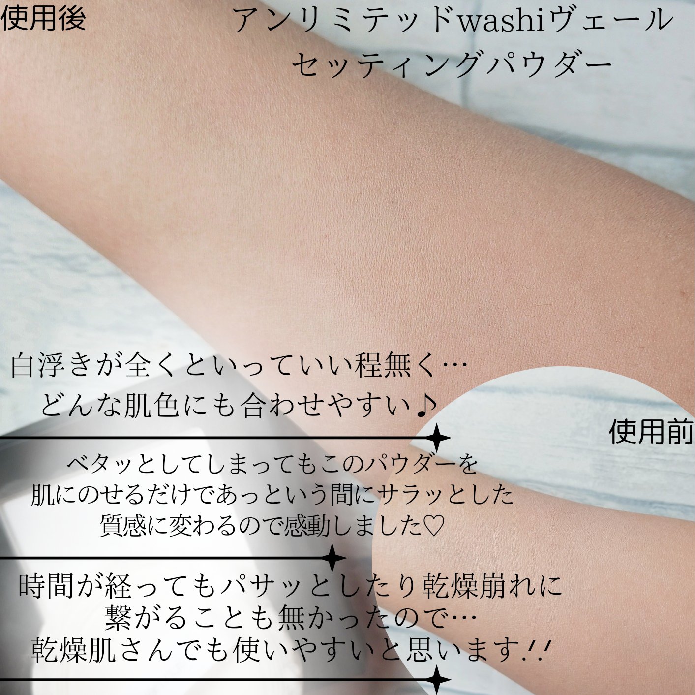 アンリミテッド washi ヴェール セッティング パウダーは、プレストタイプなんだけどフワッとのるし、セミマットよりに仕上がるけど、オイル配合のおかげ?で乾燥しにくい処方🥹 メイクアップ フィックスミスト(ユズ)は、限定の香りです、ユズ大好物☺️ 香りがフワッとしてて、ミスト自体も粒子が細かくて、ベタつかない軽さがあるので好きー! 見た目がシンプルなパッケージも、わたし的にはポイント高くて使いやすい🎁