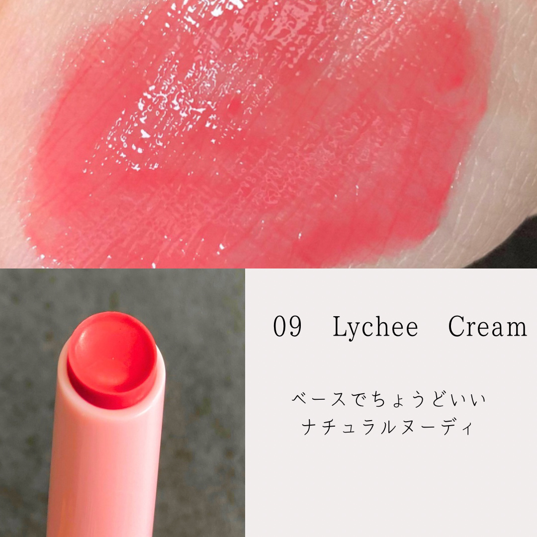 - <01 ジェントルピーチ> 水添ポリイソブテン、テトラ(ヒドロキシステアリン酸/イソステアリン酸)ジペンタエリスリチル、ヒドロキシステアリン酸エチルヘキシル、トリメリト酸トリトリデシル、水添ロジン酸メチル、ダイマージリノール酸(フィトステリル/イソステアリル/セチル/ステアリル/ベヘニル)、ジ安息香酸PG、合成ワックス、リンゴ酸ジイソステアリル、パラフィン、マカデミアナッツ脂肪酸フィトステリル、シリル化シリカ、イソステアリン酸ソルビタン、(VP/ヘキサデセン)コポリマー、酸化チタン、パルミチン酸デキストリン、マイクロクリスタリンワックス、トリイソステアリン酸ポリグリセリル-2、酸化鉄、赤202、黄5、ジイソステアリン酸ポリグリセリル-2、水、アルガニアスピノサ核油、ホホバ種子油、BG、サトウカエデエキス、フェノキシエタノール、アサイヤシ果実エキス、フラガリアチロエンシス果実エキス、クコ果実エキス、クロミグワ果実エキス、クロフサスグリ果実エキス、セイヨウヤブイチゴ果実エキス、キイチゴエキス、ローブッシュブルーベリー果実エキス、クランベリー果実エキス、ビルベリー果実エキス、エチルヘキシルグリセリン <02 アップルシナモン> 水添ポリイソブテン、テトラ(ヒドロキシステアリン酸/イソステアリン酸)ジペンタエリスリチル、ヒドロキシステアリン酸エチルヘキシル、トリメリト酸トリトリデシル、水添ロジン酸メチル、ダイマージリノール酸(フィトステリル/イソステアリル/セチル/ステアリル/ベヘニル)、ジ安息香酸PG、合成ワックス、パラフィン、リンゴ酸ジイソステアリル、マカデミアナッツ脂肪酸フィトステリル、シリル化シリカ、イソステアリン酸ソルビタン、(VP/ヘキサデセン)コポリマー、トリイソステアリン酸ポリグリセリル-2、パルミチン酸デキストリン、酸化鉄、マイクロクリスタリンワックス、酸化チタン、赤202、ジイソステアリン酸ポリグリセリル-2、黄5、水、アルガニアスピノサ核油、ホホバ種子油、BG、サトウカエデエキス、フェノキシエタノール、アサイヤシ果実エキス、フラガリアチロエンシス果実エキス、クコ果実エキス、クロミグワ果実エキス、クロフサスグリ果実エキス、セイヨウヤブイチゴ果実エキス、キイチゴエキス、ローブッシュブルーベリー果実エキス、クランベリー果実エキス、ビルベリー果実エキス、エチルヘキシルグリセリン <03 ローズミルクティー> 水添ポリイソブテン、テトラ(ヒドロキシステアリン酸/イソステアリン酸)ジペンタエリスリチル、ヒドロキシステアリン酸エチルヘキシル、トリメリト酸トリトリデシル、水添ロジン酸メチル、ダイマージリノール酸(フィトステリル/イソステアリル/セチル/ステアリル/ベヘニル)、ジ安息香酸PG、合成ワックス、リンゴ酸ジイソステアリル、パラフィン、マカデミアナッツ脂肪酸フィトステリル、シリル化シリカ、イソステアリン酸ソルビタン、(VP/ヘキサデセン)コポリマー、酸化チタン、トリイソステアリン酸ポリグリセリル-2、パルミチン酸デキストリン、マイクロクリスタリンワックス、酸化鉄、黄4、赤202、ジイソステアリン酸ポリグリセリル-2、青1、水、アルガニアスピノサ核油、ホホバ種子油、BG、サトウカエデエキス、フェノキシエタノール、アサイヤシ果実エキス、フラガリアチロエンシス果実エキス、クコ果実エキス、クロミグワ果実エキス、クロフサスグリ果実エキス、セイヨウヤブイチゴ果実エキス、キイチゴエキス、ローブッシュブルーベリー果実エキス、クランベリー果実エキス、ビルベリー果実エキス、エチルヘキシルグリセリン <04 ヌーディーフィグ> 水添ポリイソブテン、テトラ(ヒドロキシステアリン酸/イソステアリン酸)ジペンタエリスリチル、ヒドロキシステアリン酸エチルヘキシル、トリメリト酸トリトリデシル、水添ロジン酸メチル、ダイマージリノール酸(フィトステリル/イソステアリル/セチル/ステアリル/ベヘニル)、ジ安息香酸PG、合成ワックス、リンゴ酸ジイソステアリル、パラフィン、マカデミアナッツ脂肪酸フィトステリル、シリル化シリカ、イソステアリン酸ソルビタン、(VP/ヘキサデセン)コポリマー、酸化チタン、パルミチン酸デキストリン、マイクロクリスタリンワックス、トリイソステアリン酸ポリグリセリル-2、酸化鉄、黄4、赤202、ジイソステアリン酸ポリグリセリル-2、水、アルガニアスピノサ核油、ホホバ種子油、BG、サトウカエデエキス、フェノキシエタノール、アサイヤシ果実エキス、フラガリアチロエンシス果実エキス、クコ果実エキス、クロミグワ果実エキス、クロフサスグリ果実エキス、セイヨウヤブイチゴ果実エキス、キイチゴエキス、ローブッシュブルーベリー果実エキス、クランベリー果実エキス、ビルベリー果実エキス、エチルヘキシルグリセリン <05 シュガープラム> 水添ポリイソブテン、テトラ(ヒドロキシステアリン酸/イソステアリン酸)ジペンタエリスリチル、ヒドロキシステアリン酸