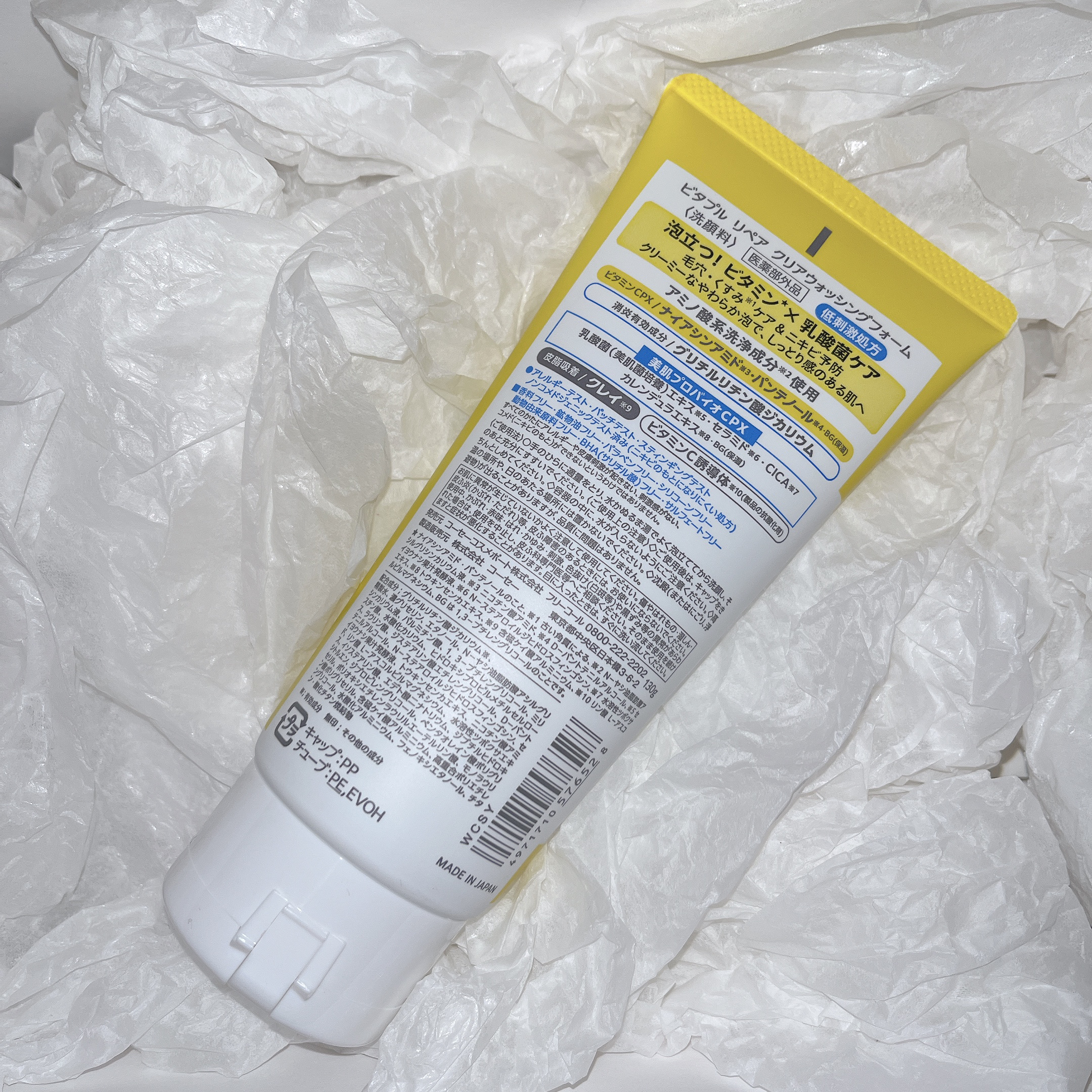 塗るビタミン×乳酸菌洗顔!【概要】〇130g〇ドラッグストアで購入出来ます〇チューブタイプの洗顔〇肌悩みケアのビタミンと守りの乳酸菌コンセプトの洗顔〇無添加、低刺激処方〇クレイ×酵素で、毛穴&ニキビ予防シリーズ【テクスチャ、感想等】■半透明の...