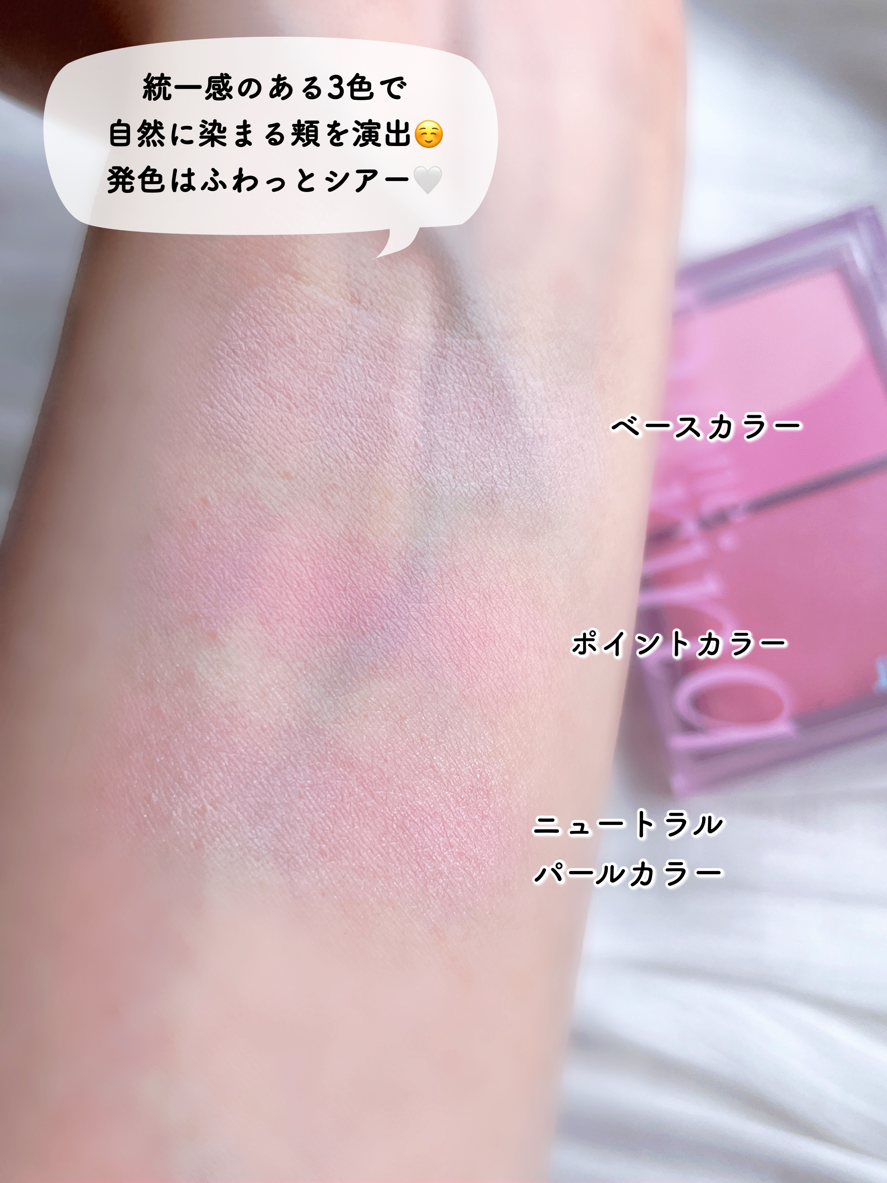 明るいカラー密着持続 ♥シマーマットデュアルテクスチャー ♥ほんのり艶感と立体感を演出 ♡ペールピーチ(シマー) ニュートラルピーチトーンの色味、柔らかピンクイエベ・ブルベ両方ともOK✨️ 👱🏻♀️ ̖́ シマーとマットを一緒に使えるチーク&ハイライト💗可愛いピーチカラーで明るくポップな頬に🍑ツヤも綺麗でした✨️
