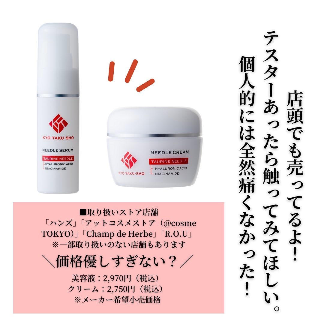 世界初*の技術! “溶けるタウリン**ニードル”を使用して作られた商品。これによりかつてない浸透力を実現! 国内初*の医薬部外品のマイクロニードルコスメです。 このコスメディ製薬は、京都薬科大学の研究室からスタートしたベンチャー製薬メーカーなんです!