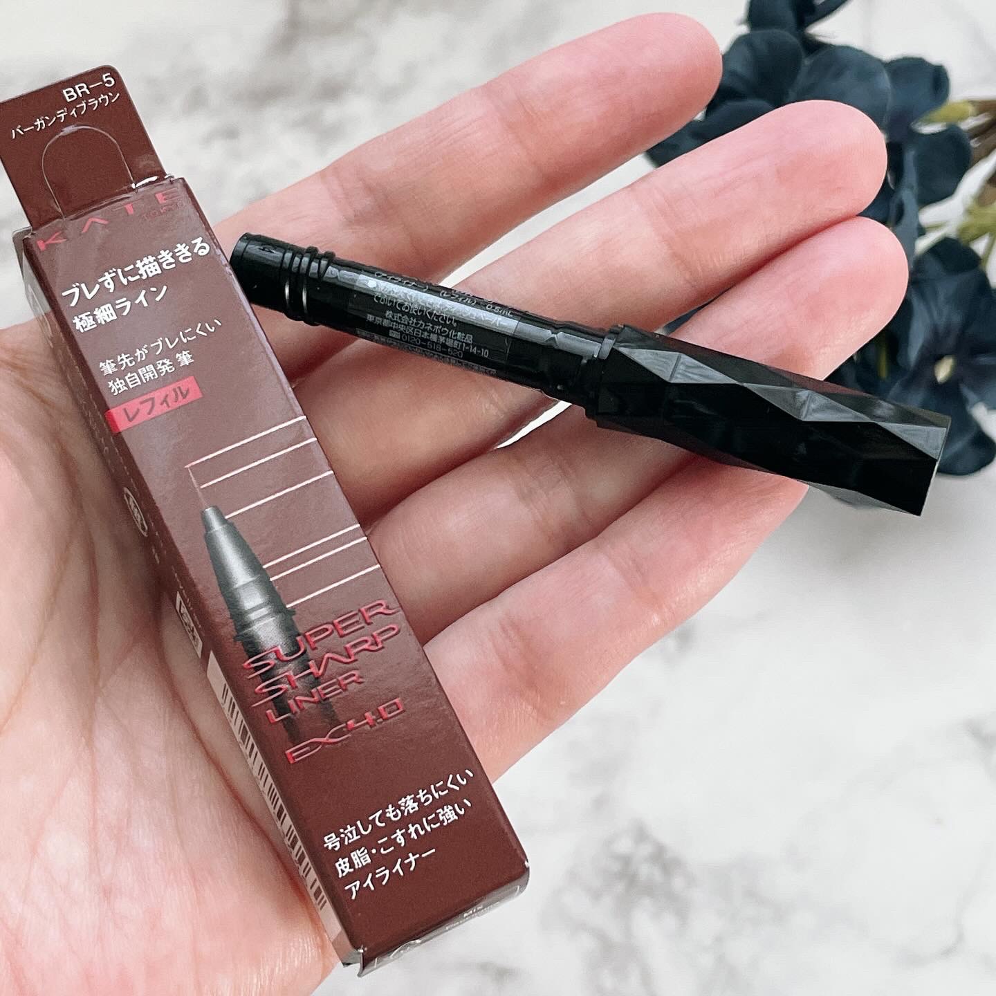 - 強い筆圧でも、どこを持っても極細ラインがブレずに描け、色が長時間持続するリキッドライナー。 ●極細ラインを安定して描けるケイト独自開発筆。 ●どこを持っても指先がフィットするダイヤモンドカット形状の容器。 ●汗・水に強く、号泣しても落ちにくいウォータープルーフタイプ。 ●皮脂・こすれに強い、スマッジプルーフタイプ。 ●ケイト スーパーシャープライナーEX4.0(レフィル)をセット可能です。 ●改良ポイント 極細ラインが安定して描き続けられる独自開発の筆 落ちにくさアップ 付け替えできる新容器「リ・ウェアボトル」 専用レフィルを付け替えて何度も繰り返し使える! 好きな色を組み合わせられるWエンド使用も! ※ケイト スーパーシャープライナーEX3.0と比較して <ショート筆 レフィル> 超極細ラインがちょこちょこ描けて失敗しにくい 毛先が短いショート筆タイプのリキッドライナーレフィル。号泣しても落ちにくく、皮脂・こすれに強い。 ●お湯オフタイプ ●一日中色持続 ●ケイト スーパーシャープライナーEX4.0のホルダー本体部、またはスーパーシャープライナー用ホルダーにセットして使う付け替えタイプです。筆先ごと付け替えられます。 ●全5色 BK-1(漆黒ブラック) BR-1(自然なブラウン) BR-2(ビターブラウン) BR-6(ダークブラウン) GY-1(ダークグレージュ) <BK-1 漆黒ブラック(ショート筆)(ホルダー・レフィルセット)> <BR-2 ビターブラウン(ショート筆)(ホルダー・レフィルセット)> ■ホルダー・レフィルセット ■中身がなくなったら、別売りのケイト スーパーシャープライナーEX4.0(ショート筆)レフィルをお求めください