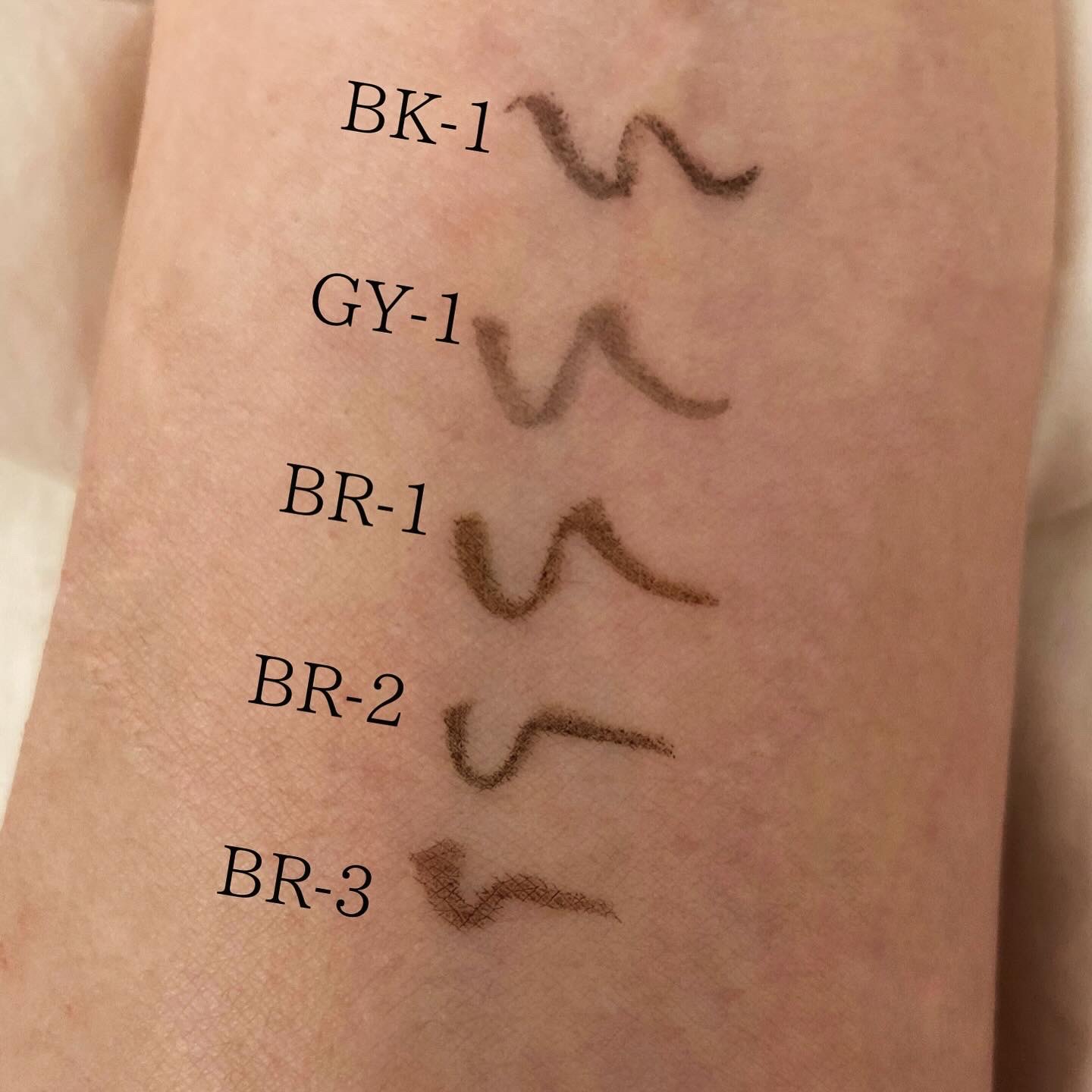 - <BK-1 漆黒ブラック> 水、BG、アクリレーツコポリマー、(アクリレーツ/アクリル酸エチルヘキシル)コポリマー、(スチレン/アクリレーツ)コポリマー、アクリレーツコポリマーアンモニウム、PEG-60水添ヒマシ油、DPG、ラウレス-21、AMP、(アクリレーツ/メタクリル酸ステアレス-20)コポリマー、EDTA-2Na、ポリグリセリル-3ジシロキサンジメチコン、クエン酸、ステアリン酸PEG-40、トリイソステアリン酸ポリグリセリル-2、ポリリシノレイン酸ポリグリセリル-6、セスキイソステアリン酸ソルビタン、フェノキシエタノール、メチルパラベン、エチルパラベン、(+/-)カーボンブラック、酸化鉄、赤226、(チタン/酸化チタン)焼結物 <BR-1 自然なブラウン> 水、BG、アクリレーツコポリマー、(アクリレーツ/アクリル酸エチルヘキシル)コポリマー、(スチレン/アクリレーツ)コポリマー、アクリレーツコポリマーアンモニウム、PEG-60水添ヒマシ油、DPG、ラウレス-21、AMP、(アクリレーツ/メタクリル酸ステアレス-20)コポリマー、EDTA-2Na、ポリグリセリル-3ジシロキサンジメチコン、クエン酸、ステアリン酸PEG-40、トリイソステアリン酸ポリグリセリル-2、ポリリシノレイン酸ポリグリセリル-6、セスキイソステアリン酸ソルビタン、フェノキシエタノール、メチルパラベン、エチルパラベン、(+/-)カーボンブラック、酸化鉄、赤226、(チタン/酸化チタン)焼結物 <BR-2 ビターブラウン> 水、BG、アクリレーツコポリマー、(アクリレーツ/アクリル酸エチルヘキシル)コポリマー、(スチレン/アクリレーツ)コポリマー、アクリレーツコポリマーアンモニウム、PEG-60水添ヒマシ油、DPG、ラウレス-21、AMP、(アクリレーツ/メタクリル酸ステアレス-20)コポリマー、EDTA-2Na、ポリグリセリル-3ジシロキサンジメチコン、クエン酸、ステアリン酸PEG-40、トリイソステアリン酸ポリグリセリル-2、ポリリシノレイン酸ポリグリセリル-6、セスキイソステアリン酸ソルビタン、フェノキシエタノール、メチルパラベン、エチルパラベン、(+/-)カーボンブラック、酸化鉄、赤226、(チタン/酸化チタン)焼結物 <BR-3 ウォームブラウン> 水、BG、アクリレーツコポリマー、(アクリレーツ/アクリル酸エチルヘキシル)コポリマー、(スチレン/アクリレーツ)コポリマー、アクリレーツコポリマーアンモニウム、PEG-60水添ヒマシ油、DPG、ラウレス-21、AMP、(アクリレーツ/メタクリル酸ステアレス-20)コポリマー、EDTA-2Na、ポリグリセリル-3ジシロキサンジメチコン、クエン酸、ステアリン酸PEG-40、トリイソステアリン酸ポリグリセリル-2、ポリリシノレイン酸ポリグリセリル-6、セスキイソステアリン酸ソルビタン、フェノキシエタノール、メチルパラベン、エチルパラベン、(+/-)カーボンブラック、酸化鉄、赤226、(チタン/酸化チタン)焼結物 <GY-1 ダークグレージュ> 水、BG、アクリレーツコポリマー、(アクリレーツ/アクリル酸エチルヘキシル)コポリマー、(スチレン/アクリレーツ)コポリマー、アクリレーツコポリマーアンモニウム、PEG-60水添ヒマシ油、DPG、ラウレス-21、AMP、(アクリレーツ/メタクリル酸ステアレス-20)コポリマー、EDTA-2Na、ポリグリセリル-3ジシロキサンジメチコン、クエン酸、ステアリン酸PEG-40、トリイソステアリン酸ポリグリセリル-2、ポリリシノレイン酸ポリグリセリル-6、セスキイソステアリン酸ソルビタン、フェノキシエタノール、メチルパラベン、エチルパラベン、(+/-)カーボンブラック、酸化鉄、赤226、(チタン/酸化チタン)焼結物 <BK-1 漆黒ブラック(レフィル)> 水、BG、アクリレーツコポリマー、(アクリレーツ/アクリル酸エチルヘキシル)コポリマー、(スチレン/アクリレーツ)コポリマー、アクリレーツコポリマーアンモニウム、PEG-60水添ヒマシ油、DPG、ラウレス-21、AMP、(アクリレーツ/メタクリル酸ステアレス-20)コポリマー、EDTA-2Na、ポリグリセリル-3ジシロキサンジメチコン、クエン酸、ステアリン酸PEG-40、トリイソステアリン酸ポリグリセリル-2、ポリリシノレイン酸ポリグリセリル-6、セスキイソステアリン酸ソルビタン、フェノキシエタノール、メチルパラベン、エチルパラベン、(+/-)カーボンブラック、酸化鉄、赤226、(チタン/酸化チタン)焼結物 <BR-1 自然なブラウン(レフィル)> 水、BG、アクリレーツコポリマー、(アクリレーツ/アクリル酸エチルヘキシル)コポリマー、(スチレン/アクリレーツ)コポリマー、アクリレーツコポリマーアンモニウム、PEG-60水添ヒマシ油、DPG、ラウレス-21、AMP、(アクリレーツ/メタクリル酸ステアレス-20)コポリマー、EDTA-2Na、ポリグリセリル-3ジシロキサンジメチコン、クエン酸、ステアリン酸PEG-40、トリイソステアリン酸ポリグリセリル-2、ポリリシノレイン酸ポリグリセリル-6、セスキイソステアリン酸ソルビタン、フェノキシエタノール、メチルパラベン、エチルパラベン、(+/-)カーボンブラック、酸化鉄、赤226、(チタン/酸化チタン)焼結物 <BR-2 ビターブラウン(レフィル)> 水、BG、アクリレーツコポリマー、(アクリレーツ/アクリル酸エチルヘキシル)コポ
