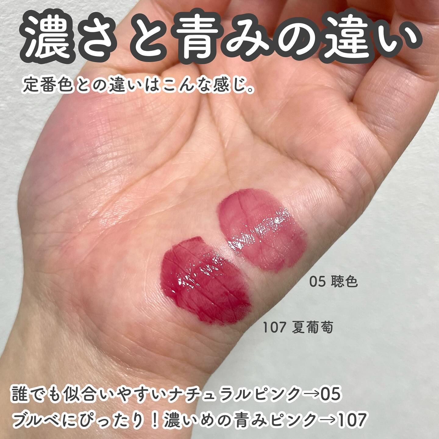 - <01 透桜 -SUKEZAKURA> ミネラルオイル、マイクロクリスタリンワックス、ワセリン、水添ポリイソブテン、リンゴ酸ジイソステアリル、イソノナン酸イソトリデシル、パルミチン酸デキストリン、パラフィン、スクワラン、ラウロイルグルタミン酸ジ(オクチルドデシル/フィトステリル/ベヘニル)、ミリスチン酸オクチルドデシル、パルミトイルヒドロキシプロピルセルロース、トコフェロール、シメチコン、ホホバ種子油、ヒドロキシステアリン酸エチルヘキシル、ジメチコン、クエン酸、ヒアルロン酸Na、フェノキシエタノール、(+/-)(チタン/酸化チタン)焼結物、マイカ、ラウロイルアスパラギン酸Na、ラウロイルリシン、塩化亜鉛、酸化チタン、酸化鉄、水酸化Al、硫酸Ba、トリイソステアリン酸イソプロピルチタン、トリエトキシカプリリルシラン、酸化スズ、ホウケイ酸(Ca/Al)、黄4、青1、赤104(1)、赤201、赤202、赤218、赤223 <02 淡羽色 -AWAHANEIRO> ミネラルオイル、マイクロクリスタリンワックス、ワセリン、水添ポリイソブテン、リンゴ酸ジイソステアリル、イソノナン酸イソトリデシル、パルミチン酸デキストリン、パラフィン、スクワラン、ラウロイルグルタミン酸ジ(オクチルドデシル/フィトステリル/ベヘニル)、ミリスチン酸オクチルドデシル、パルミトイルヒドロキシプロピルセルロース、トコフェロール、シメチコン、ホホバ種子油、ヒドロキシステアリン酸エチルヘキシル、ジメチコン、クエン酸、ヒアルロン酸Na、フェノキシエタノール、(+/-)(チタン/酸化チタン)焼結物、マイカ、ラウロイルアスパラギン酸Na、ラウロイルリシン、塩化亜鉛、酸化チタン、酸化鉄、水酸化Al、硫酸Ba、トリイソステアリン酸イソプロピルチタン、トリエトキシカプリリルシラン、酸化スズ、ホウケイ酸(Ca/Al)、黄4、青1、赤104(1)、赤201、赤202、赤218、赤223 <03 蜜込 -MITSUKOME> ミネラルオイル、マイクロクリスタリンワックス、ワセリン、水添ポリイソブテン、リンゴ酸ジイソステアリル、イソノナン酸イソトリデシル、パルミチン酸デキストリン、パラフィン、スクワラン、ラウロイルグルタミン酸ジ(オクチルドデシル/フィトステリル/ベヘニル)、ミリスチン酸オクチルドデシル、パルミトイルヒドロキシプロピルセルロース、トコフェロール、シメチコン、ホホバ種子油、ヒドロキシステアリン酸エチルヘキシル、ジメチコン、クエン酸、ヒアルロン酸Na、フェノキシエタノール、(+/-)(チタン/酸化チタン)焼結物、マイカ、ラウロイルアスパラギン酸Na、ラウロイルリシン、塩化亜鉛、酸化チタン、酸化鉄、水酸化Al、硫酸Ba、トリイソステアリン酸イソプロピルチタン、トリエトキシカプリリルシラン、酸化スズ、ホウケイ酸(Ca/Al)、黄4、青1、赤104(1)、赤201、赤202、赤218、赤223 <04 艶煉瓦 -TSUYARENGA> ミネラルオイル、マイクロクリスタリンワックス、ワセリン、水添ポリイソブテン、リンゴ酸ジイソステアリル、イソノナン酸イソトリデシル、パルミチン酸デキストリン、パラフィン、スクワラン、ラウロイルグルタミン酸ジ(オクチルドデシル/フィトステリル/ベヘニル)、ミリスチン酸オクチルドデシル、パルミトイルヒドロキシプロピルセルロース、トコフェロール、シメチコン、ホホバ種子油、ヒドロキシステアリン酸エチルヘキシル、ジメチコン、クエン酸、ヒアルロン酸Na、フェノキシエタノール、(+/-)(チタン/酸化チタン)焼結物、マイカ、ラウロイルアスパラギン酸Na、ラウロイルリシン、塩化亜鉛、酸化チタン、酸化鉄、水酸化Al、硫酸Ba、トリイソステアリン酸イソプロピルチタン、トリエトキシカプリリルシラン、酸化スズ、ホウケイ酸(Ca/Al)、黄4、青1、赤104(1)、赤201、赤202、赤218、赤223 <05 聴色 -YURUSHIIRO> ミネラルオイル、マイクロクリスタリンワックス、ワセリン、水添ポリイソブテン、リンゴ酸ジイソステアリル、イソノナン酸イソトリデシル、パルミチン酸デキストリン、パラフィン、スクワラン、ラウロイルグルタミン酸ジ(オクチルドデシル/フィトステリル/ベヘニル)、ミリスチン酸オクチルドデシル、パルミトイルヒドロキシプロピルセルロース、トコフェロール、シメチコン、ホホバ種子油、ヒドロキシステアリン酸エチルヘキシル、ジメチコン、クエン酸、ヒアルロン酸Na、フェノキシエタノール、(+/-)(チタン/酸化チタン)焼結物、マイカ、ラウロイルアスパラギン酸Na、ラウロイルリシン、塩化亜鉛、酸化チタン、酸化鉄、水酸化Al、硫酸Ba、トリイソステアリン酸イソプロピルチタン、トリエトキシカプリリルシラン、酸化スズ、ホウケイ酸(Ca/Al)、黄4、青1、赤104(1)、赤201、赤202、赤218、赤223 <101 白菫 -SHIROSUMIRE(限定色)> ミネラルオイル、マイクロクリスタリンワックス、ワセリン、水添ポリイソブテン、リンゴ酸ジイソステアリル、イソノナン酸イソトリデシル、パルミチン酸デキストリン、パラフィン、スクワラン、ラウロイルグルタミン酸ジ(オクチルドデシル/フィトステリル/ベヘニル)、ミリスチン酸オクチルドデ
