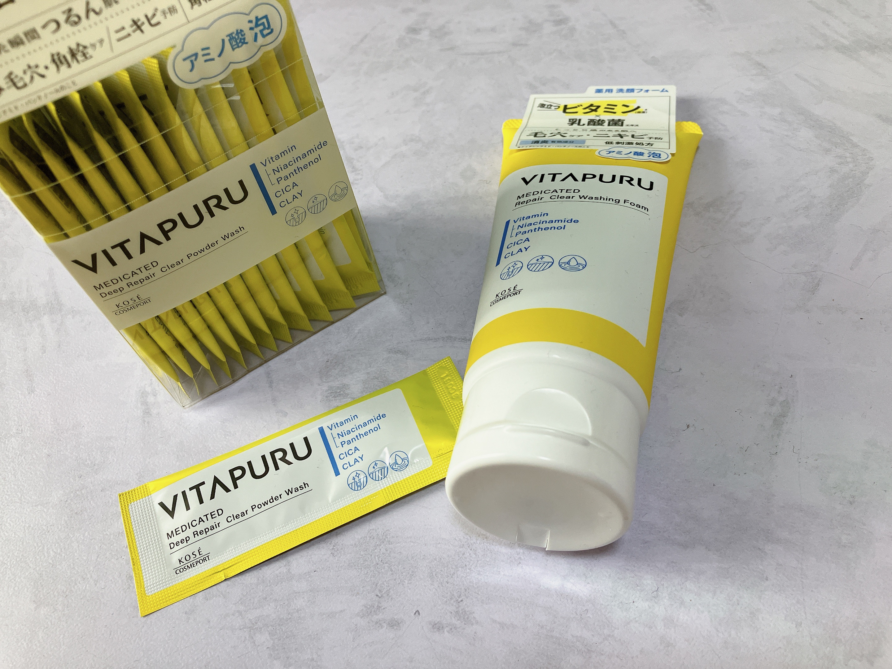 【VITAPURUリペアクリアウォッシングフォーム&ディープリペアクリアパウダーウォッシュ】コーセーコスメポート様からVITAPURUの洗顔フォームと洗顔パウダーをいただきました🍋どちらもパッケージのイメージとは違う黒い洗顔料で、洗い上がりが...