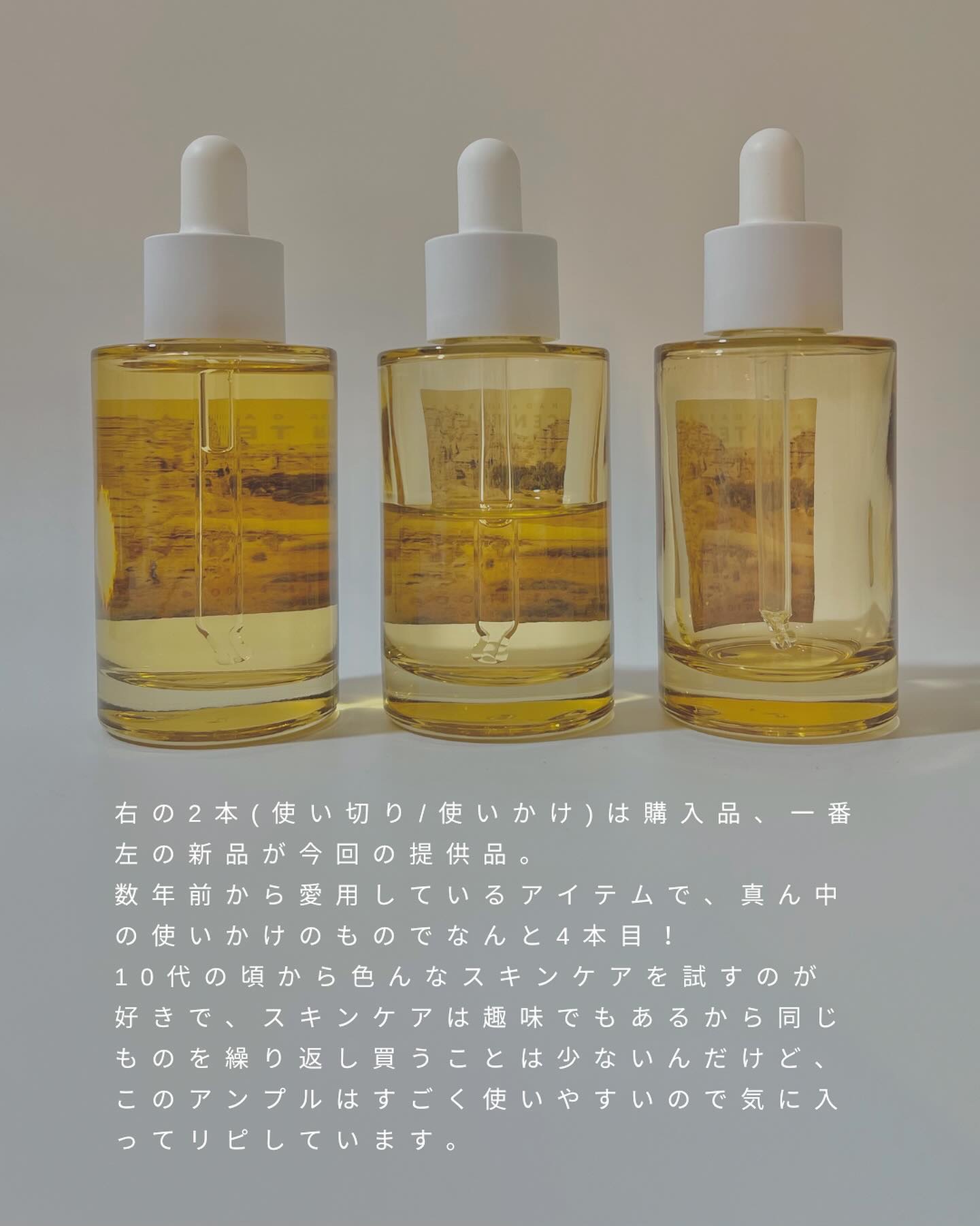 さらっとしたみずみずしいテクスチャーのアンプルで洗顔後まっさらな肌に化粧水の前に塗るベース美容液としてぴったりな商品です。 しっとりしながらもベタつかないですし、軽いので他のスキンケアを重ねやすいです✨ 一年程前に初めて使用してからずっと大好きで朝も夜も季節も問わず側にいて欲しいアンプルです💘
