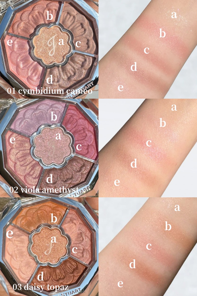 - <01 cymbidium cameo> ジメチコン、タルク、トリエチルヘキサノイン、ホウケイ酸(Ca/Al)、リンゴ酸ジイソステアリル、ラウロイルリシン、ダイマージリノール酸(フィトステリル/イソステアリル/セチル/ステアリル/ベヘニル)、(HDI/PPG/ポリカプロラクトン)クロスポリマー、メタクリル酸メチルクロスポリマー、トリメリト酸トリトリデシル、ステアロイルオキシステアリン酸オクチルドデシル、シリカ、ミネラルオイル、アボカド油、アンズ核油、トコフェロール、ラベンダー油、ローズマリー葉エキス、BHT、(ジメチコン/ビニルジメチコン)クロスポリマー、(ビニルジメチコン/ラウリルジメチコン)クロスポリマー、アモジメチコン、アルミナ、イソドデカン、エチルヘキサン酸セチル、エチルヘキシルグリセリン、オクチルドデカノール、ステアリン酸Mg、ステアリン酸オクチルドデシル、セスキイソステアリン酸ソルビタン、トリエトキシカプリリルシラン、ナイロン-12、ヘキサ(ヒドロキシステアリン酸/ステアリン酸/ロジン酸)ジペンタエリスリチル、ポリメタクリル酸メチル、ワセリン、合成フルオロフロゴパイト、酸化スズ、水酸化Al、水添ポリイソブテン、クロルフェネシン、香料、グンジョウ、コンジョウ、マイカ、酸化チタン、酸化亜鉛、酸化鉄、硫酸Ba、黄4、赤226 <02 viola amethyst> タルク、ジメチコン、トリエチルヘキサノイン、ホウケイ酸(Ca/Al)、リンゴ酸ジイソステアリル、ラウロイルリシン、ダイマージリノール酸(フィトステリル/イソステアリル/セチル/ステアリル/ベヘニル)、(HDI/PPG/ポリカプロラクトン)クロスポリマー、メタクリル酸メチルクロスポリマー、トリメリト酸トリトリデシル、ステアロイルオキシステアリン酸オクチルドデシル、ミネラルオイル、シリカ、アボカド油、アンズ核油、トコフェロール、ラベンダー油、ローズマリー葉エキス、BHT、(ジメチコン/ビニルジメチコン)クロスポリマー、(ビニルジメチコン/ラウリルジメチコン)クロスポリマー、アモジメチコン、イソドデカン、エチルヘキサン酸セチル、エチルヘキシルグリセリン、オクチルドデカノール、ステアリン酸Mg、ステアリン酸オクチルドデシル、セスキイソステアリン酸ソルビタン、トリエトキシカプリリルシラン、ナイロン-12、ヘキサ(ヒドロキシステアリン酸/ステアリン酸/ロジン酸)ジペンタエリスリチル、ホウケイ酸(Ca/Na)、ポリメタクリル酸メチル、ワセリン、合成フルオロフロゴパイト、酸化スズ、水酸化Al、水添ポリイソブテン、クロルフェネシン、香料、(PET/ポリメタクリル酸メチル)ラミネート、グンジョウ、マイカ、酸化チタン、酸化亜鉛、酸化鉄、赤226 <03 daisy topaz> タルク、ジメチコン、トリエチルヘキサノイン、ホウケイ酸(Ca/Al)、リンゴ酸ジイソステアリル、ラウロイルリシン、ダイマージリノール酸(フィトステリル/イソステアリル/セチル/ステアリル/ベヘニル)、(HDI/PPG/ポリカプロラクトン)クロスポリマー、メタクリル酸メチルクロスポリマー、トリメリト酸トリトリデシル、ステアロイルオキシステアリン酸オクチルドデシル、ミネラルオイル、アボカド油、アンズ核油、トコフェロール、ラベンダー油、ローズマリー葉エキス、BHT、(ジメチコン/ビニルジメチコン)クロスポリマー、(ビニルジメチコン/ラウリルジメチコン)クロスポリマー、アモジメチコン、イソドデカン、エチルヘキサン酸セチル、エチルヘキシルグリセリン、オクチルドデカノール、シリカ、ステアリン酸Mg、ステアリン酸オクチルドデシル、セスキイソステアリン酸ソルビタン、トリエトキシカプリリルシラン、ナイロン-12、ヘキサ(ヒドロキシステアリン酸/ステアリン酸/ロジン酸)ジペンタエリスリチル、ポリメタクリル酸メチル、ワセリン、合成フルオロフロゴパイト、酸化スズ、水酸化Al、水添ポリイソブテン、クロルフェネシン、香料、グンジョウ、マイカ、酸化チタン、酸化亜鉛、酸化鉄、黄4、赤226 <04 calandiva garnet> タルク、ジメチコン、トリエチルヘキサノイン、ホウケイ酸(Ca/Al)、リンゴ酸ジイソステアリル、ラウロイルリシン、ダイマージリノール酸(フィトステリル/イソステアリル/セチル/ステアリル/ベヘニル)、(HDI/PPG/ポリカプロラクトン)クロスポリマー、メタクリル酸メチルクロスポリマー、ホウケイ酸(Ca/チタン)、トリメリト酸トリトリデシル、シリカ、ステアロイルオキシステアリン酸オクチルドデシル、合成フルオロフロゴパイト、ミネラルオイル、ホウケイ酸(Ca/Na)、アボカド油、アンズ核油、トコフェロール、ラベンダー油、ローズマリー葉エキス、BHT、(ジメチコン/ビニルジメチコン)クロスポリマー、(ビニルジメチコン/ラウリルジメチコン)クロスポリマー、アモジメチコン、イソドデカン、エチルヘキサン酸セチル、エチルヘキシルグリセリン、オクチルドデカノール、ステアリン酸Mg、ステアリン酸オクチルドデシル、セスキイソステアリン酸ソルビタン、トリエトキシカプリリルシラン、ナイロン-12、ヘキサ(ヒ