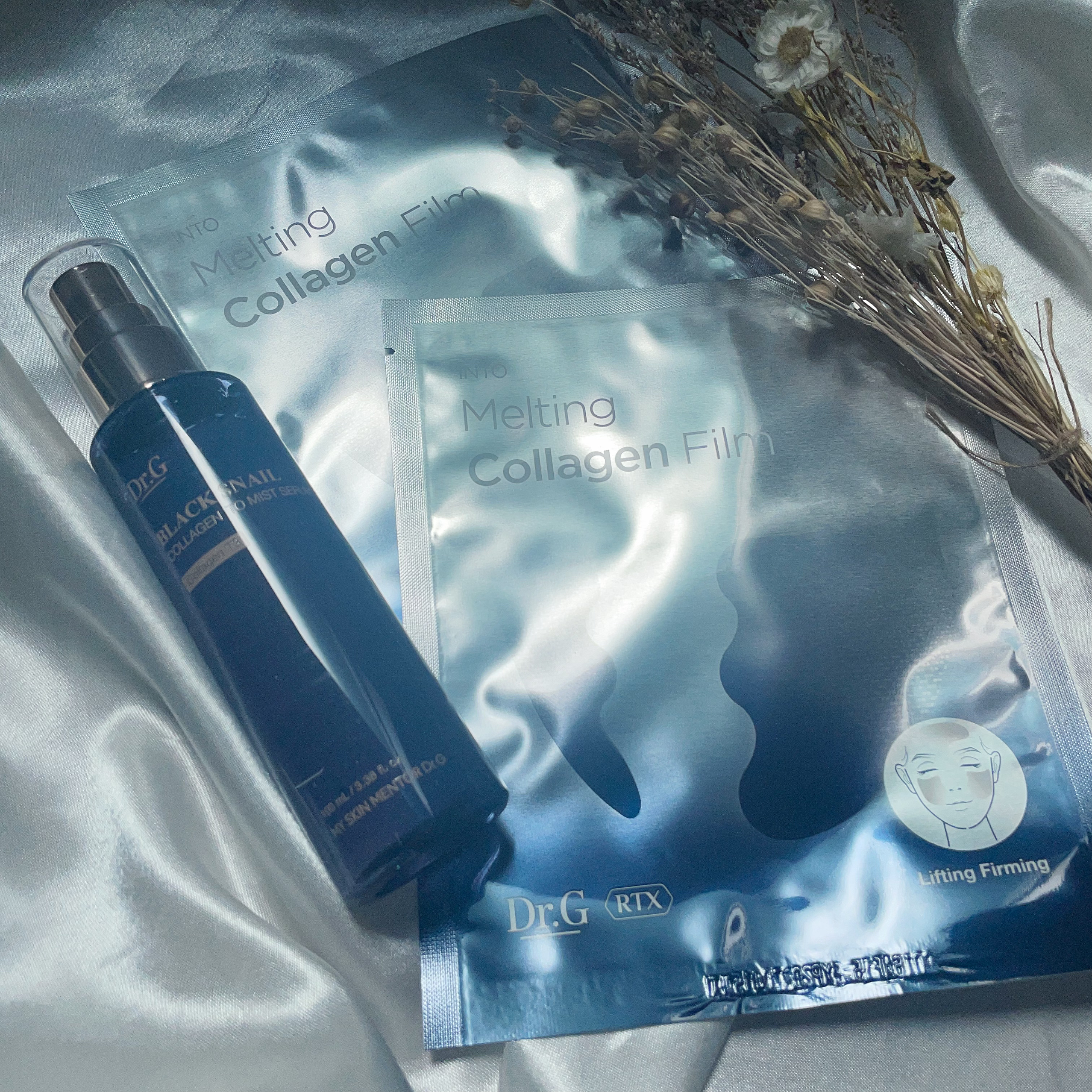 RTXイントゥメルティングコラーゲンフィルムは直接お肌に貼ることでコラーゲンが溶け込むの♡ 洗顔後の保湿したお肌にシートを乗せて、セラムミストを吹きかけるとスーっと溶け込んでいくのが新感覚♪ ブラックスネイルコラーゲントゥーミストセラムはとろっとしたセラムなんだけどシュッとするとミストで出てくるから不思議✨