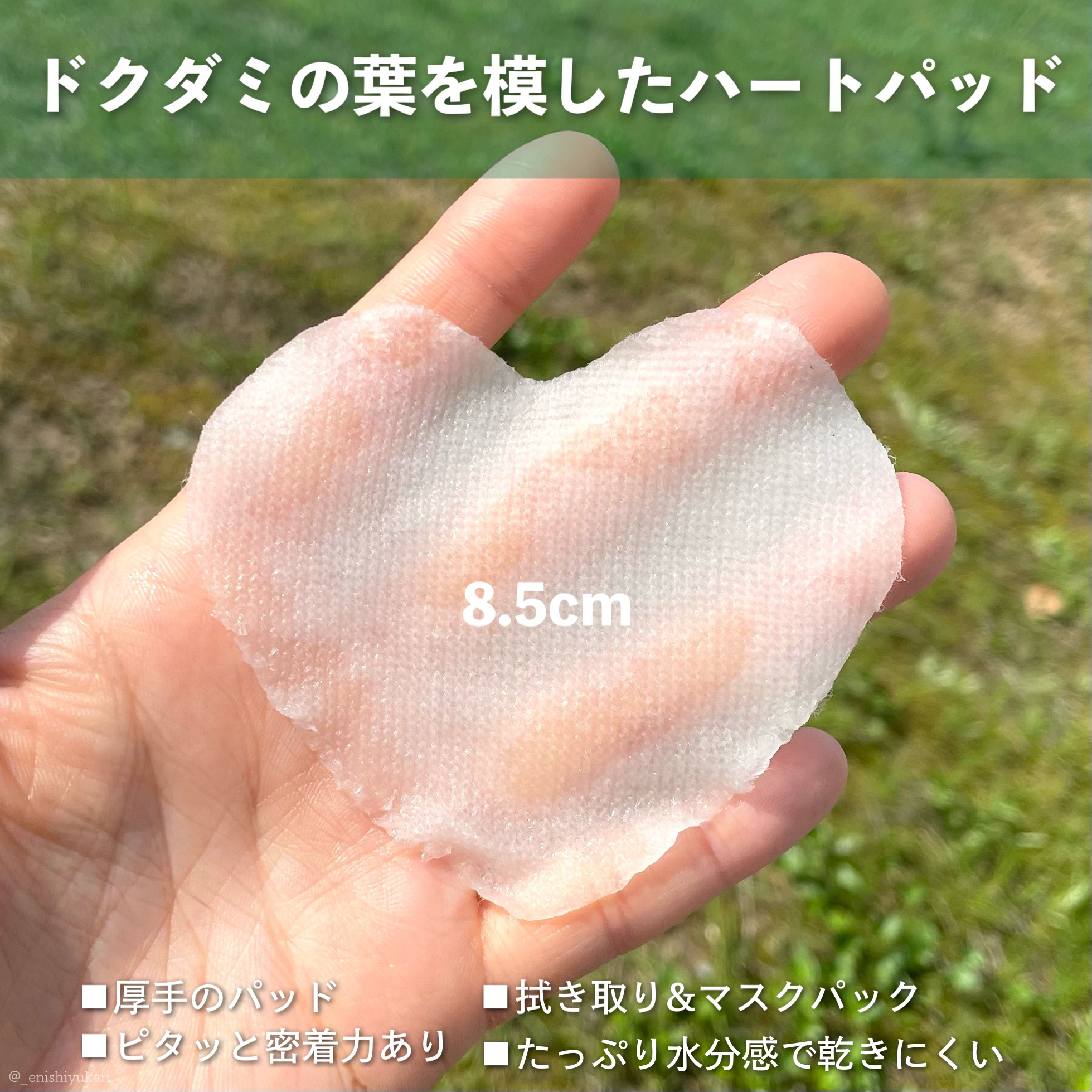 ドクダミの葉をかたどったハートパッドが可愛い🤍 リアルドクダミスージングデイリーマスク🌿 ドクダミなど8種の植物由来成分&8種のヒアルロン酸を配合! 大きめのニット生地で片面でクーリング鎮静&もう片面で肌きめケア✨ ドクダミ水88%配合のシージングエッセンスたっぷり パッチタイプのスージング鎮静デイリーマスク!