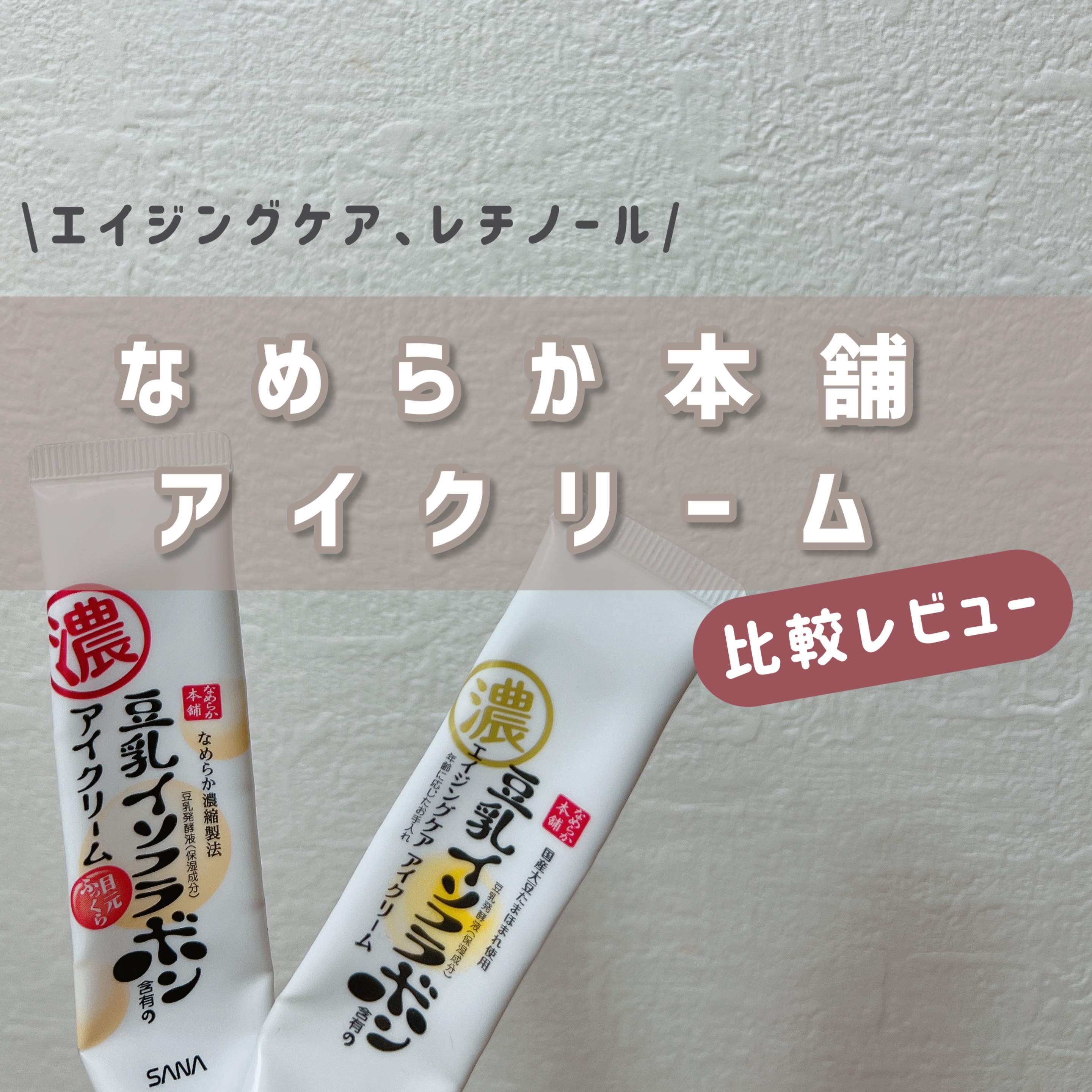 豆乳イソフラボンアイクリームなめらか本舗リンクルアイクリームN目元ふっくらクリームNC今回新しくピュアレチノール入りのアイクリームを購入したので元々持っていたのと比較してみました✨よろしければご参考にしてください...