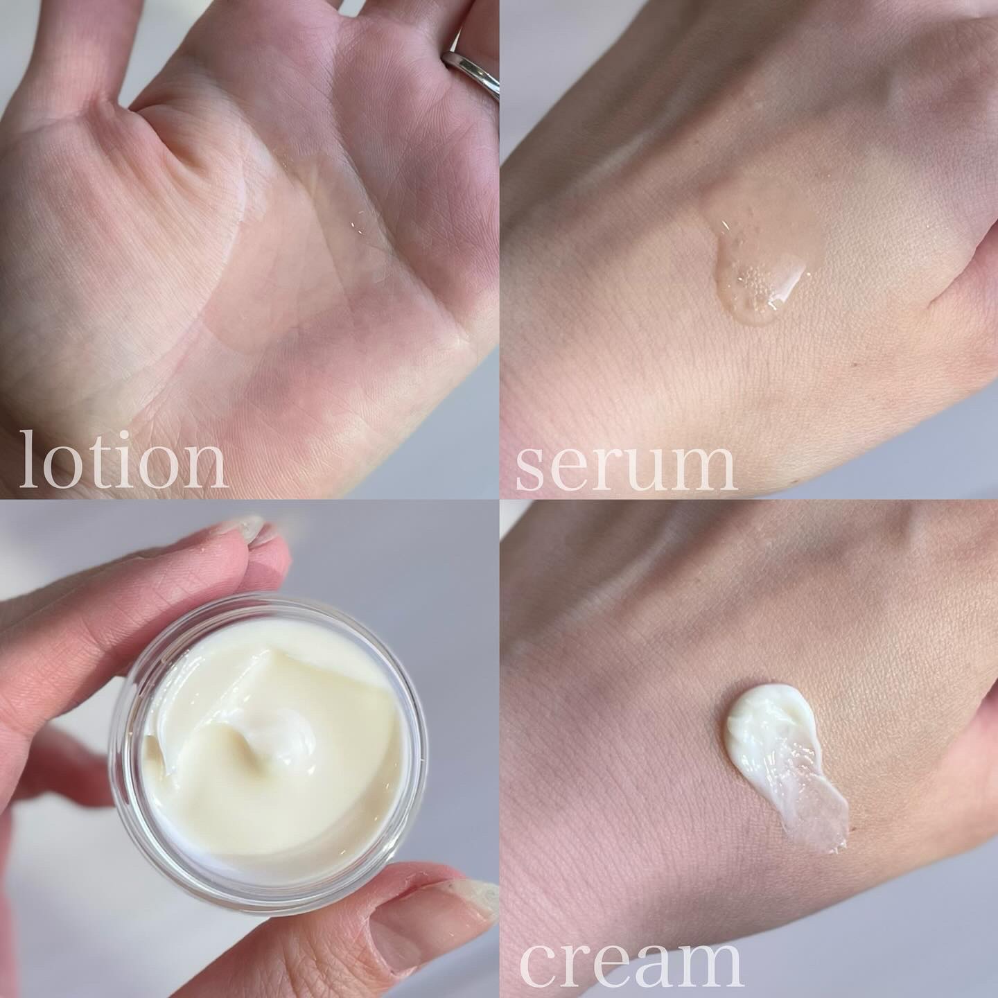敏感肌の方でも使いやすいシンプルで効果的なスキンケアセット。中身はローション・セラム・クリームのミニボトルがinされた充実の内容です。 合成界面活性剤完全無添加・合成ポリマー、パラベン完全無添加。高機能成分の《センチペタクンニンガミー》が肌へ多方面からアプローチします。 私は特にクリームのしっとりしたコクが気に入りました。ほどよい固さで肌にぴたっと密着してくれる感じが心強いです。