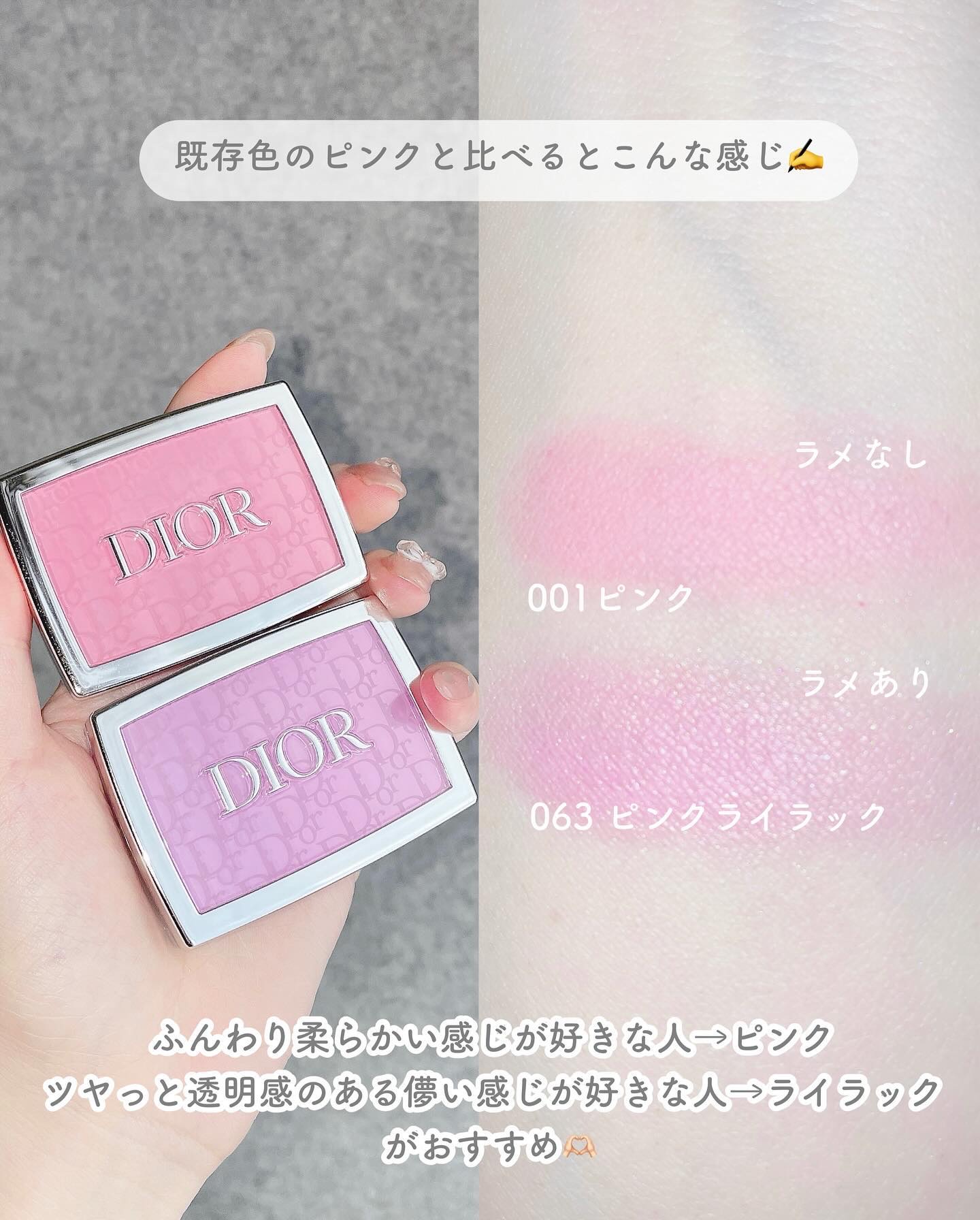今回は欠品が続くほど大人気のDiorピンクチークのご紹介*.🌷.*♡Diorディオールスキンルージュブラッシュ212チュチュホログラフィック¥7,150🌷本当に微かに優しい香りがする(気がするくらいの微かな香り)🌷かなり明るい青みピンク🌷ゴー...