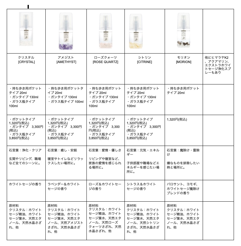気分や空間がスッと整う浄化スプレー♡ ホワイトセージが好きなのと クリスタルの美しさに惹かれて LUCASにしました♡ 気持ちが良くてとてもお気に入りです。天然成分100パーセント。 私が買ったのは、クリスタル。 スッとするホワイトセージの香りと ほんのりメンソールも感じられて クリーンで凛とした気持ちになれます。 水晶のさざれ石が きらめいてきれい♡ ホワイトセージの精油、 ホワイトセージの葉を 抽出した水のスプレー。 殺菌力があるので マスクスプレーにも。 私はなんとなく 嫌な気分になったり モヤっとしたとき、 また 日課の瞑想やストレッチの前に シュッとスプレーして リフレッシュしています☺️