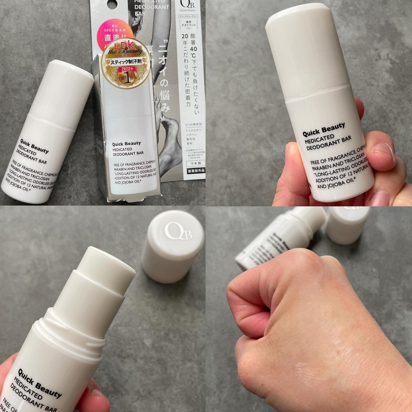 #PR#クイックビューティー@liberta_itemさまからいただきましたクイックビューティー薬用デオドラントバー表面サラサラ、ベタつき香り無くて◎夏本番はクセがないものが使いやすい🥹✨密着力が高く、汗・水・こすれ*に強く手を汚さず使えるス...