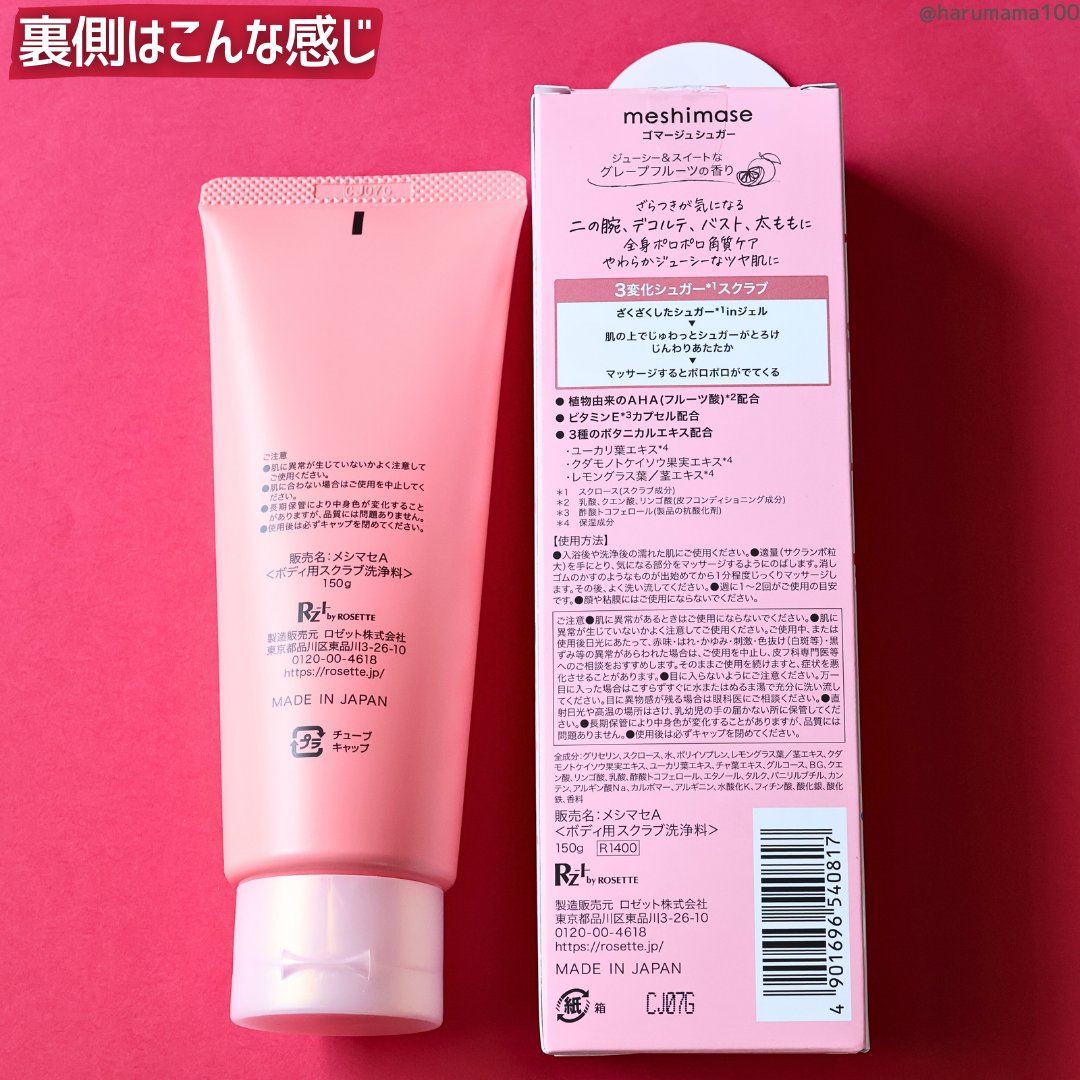 お風呂でつるすべ肌目指します😃 RZ+by ROSETTE公式様からmeshimaseボディミルクとゴマージュシュガー提供して頂きました。 この度はありがとうございます。