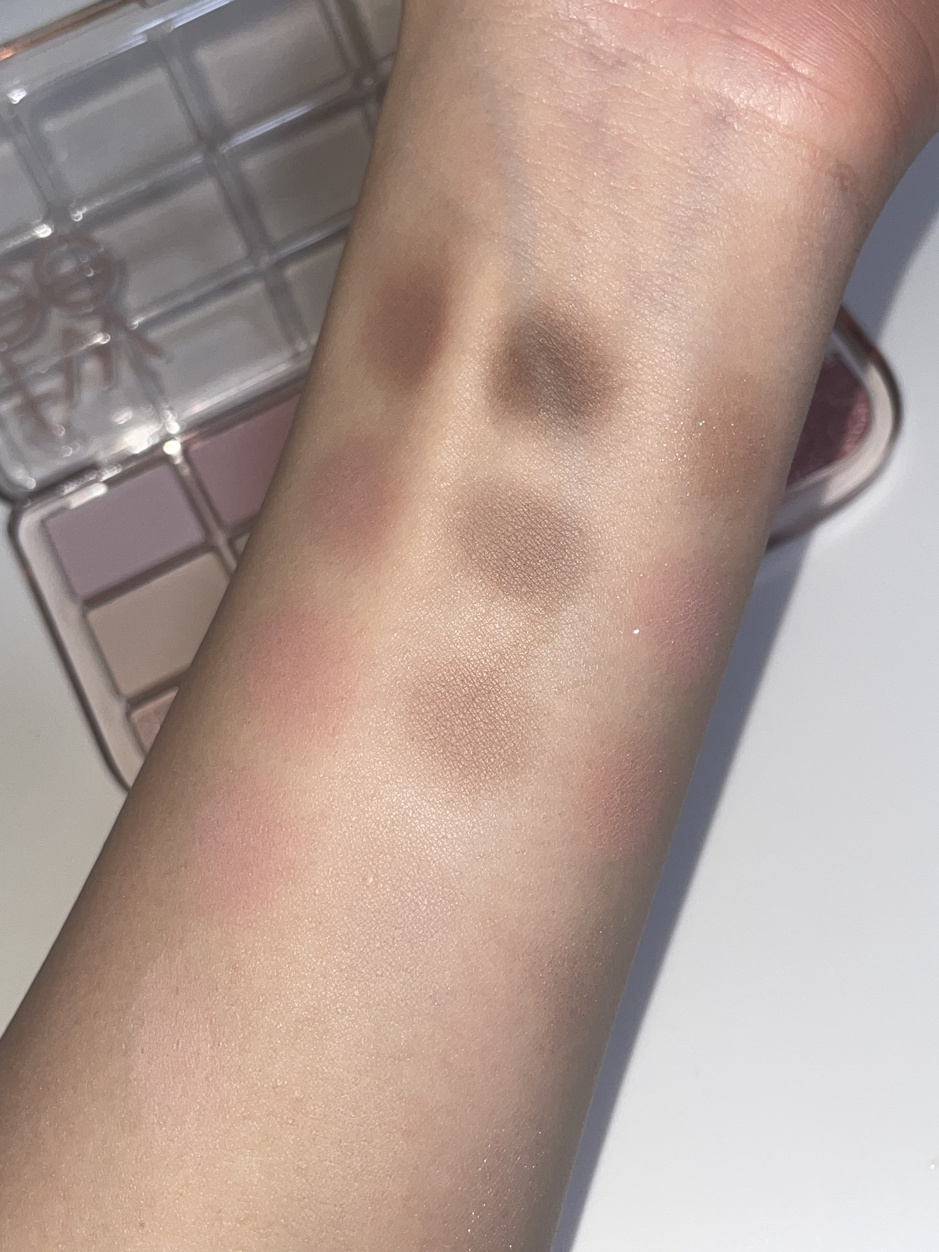 絶妙な色合いで大人っぽいけどしっかり可愛い 目元にしてくれます! このパレットは ピンク系のベースカラー(左上) 紫すぎないパープルブラウン(左下) という可愛さも演出しつつ、プリティー度は控えめで 媚びない甘さ が演出できます😭 肉眼だと紫味もしっかりわかる程度の発色があります! ぜひぜひチェックして頂きたいパレットです!!